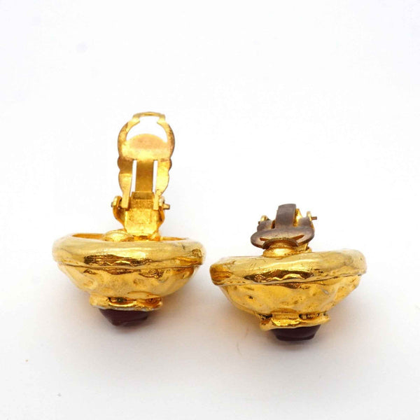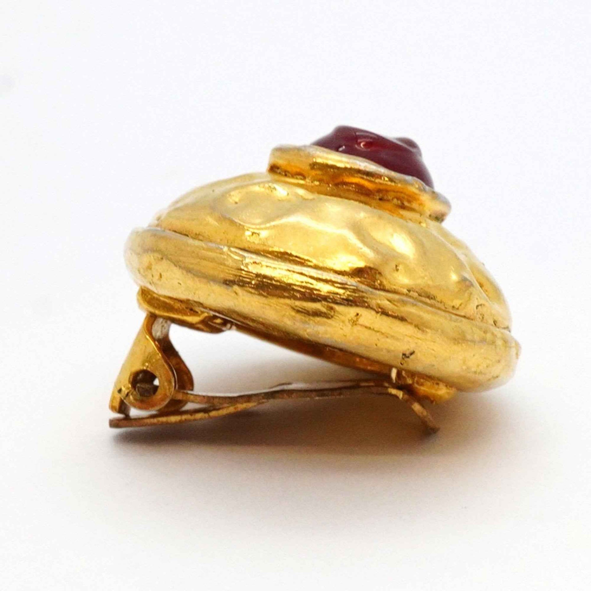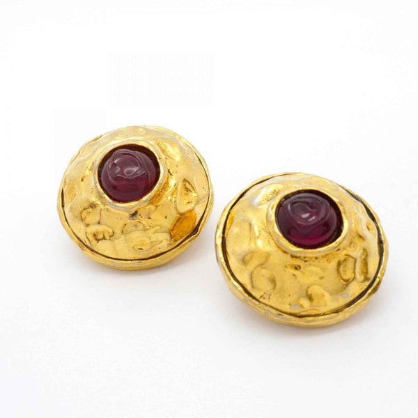 Chanel Circle Earrings, GP Plated Gripoir Gold, Red, Women\'s, P1416589