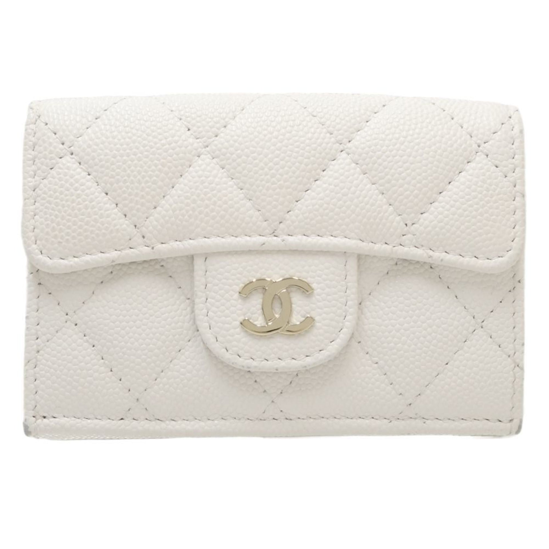 CHANEL Classic Small Flap Matelasse AP0230 Trifold Wallet Caviar Skin White 083640