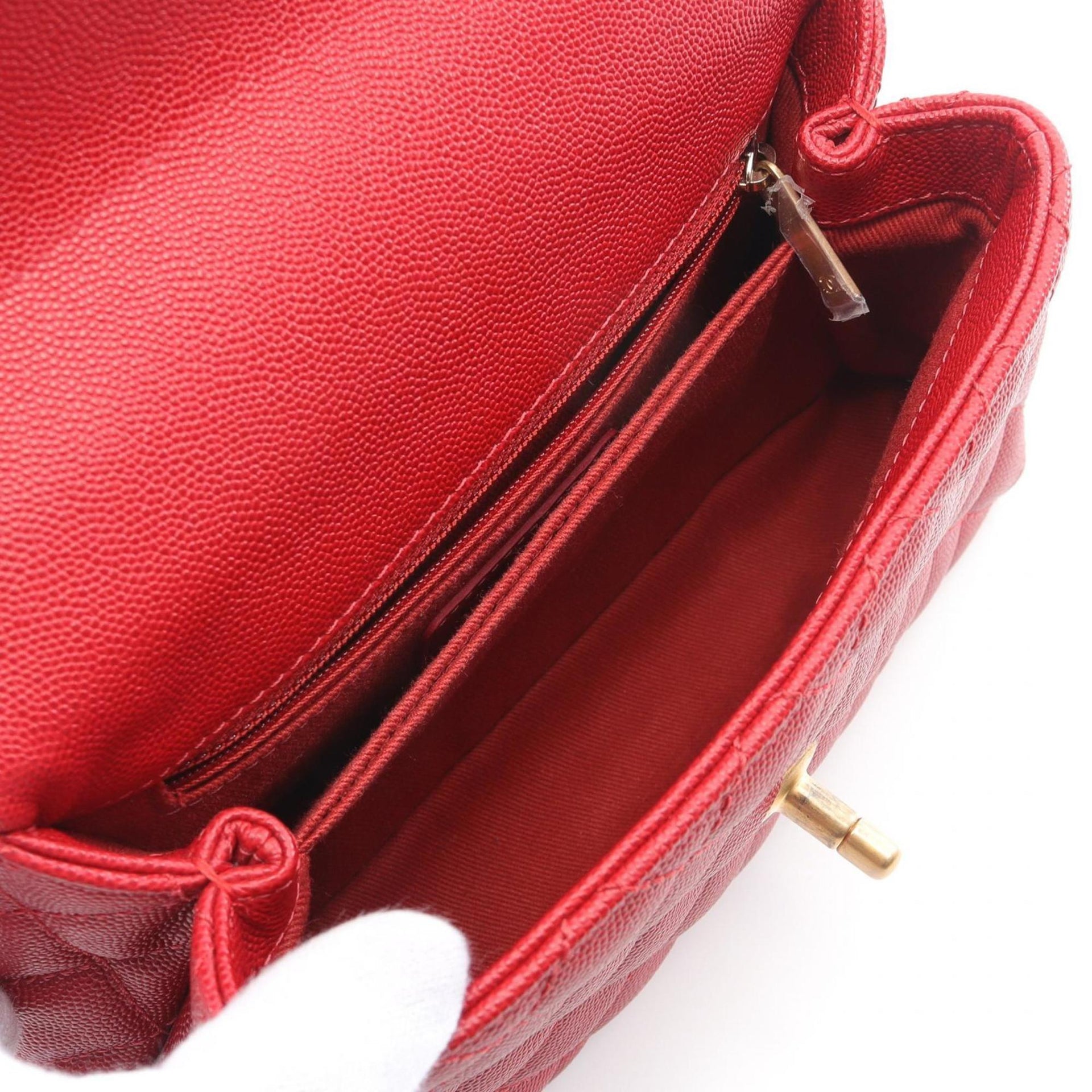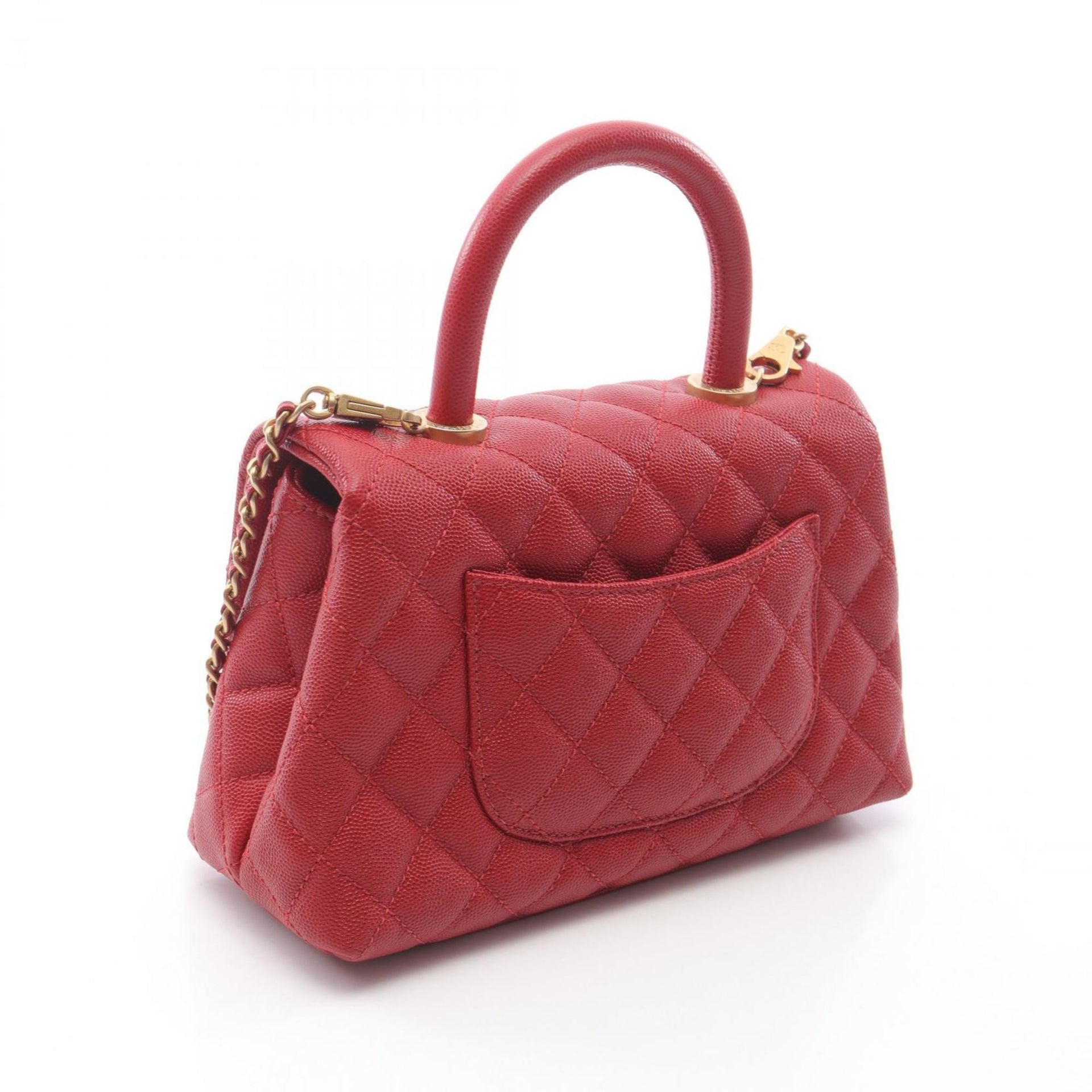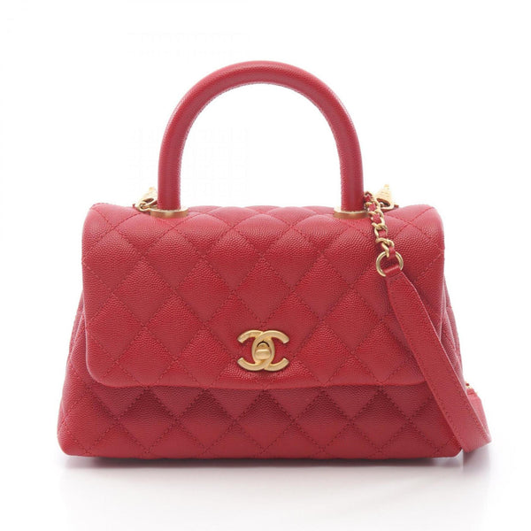 CHANEL Coco Handle Flap Matelasse Handbag Caviar Skin (Grained Calf) Women\'s Red A92990