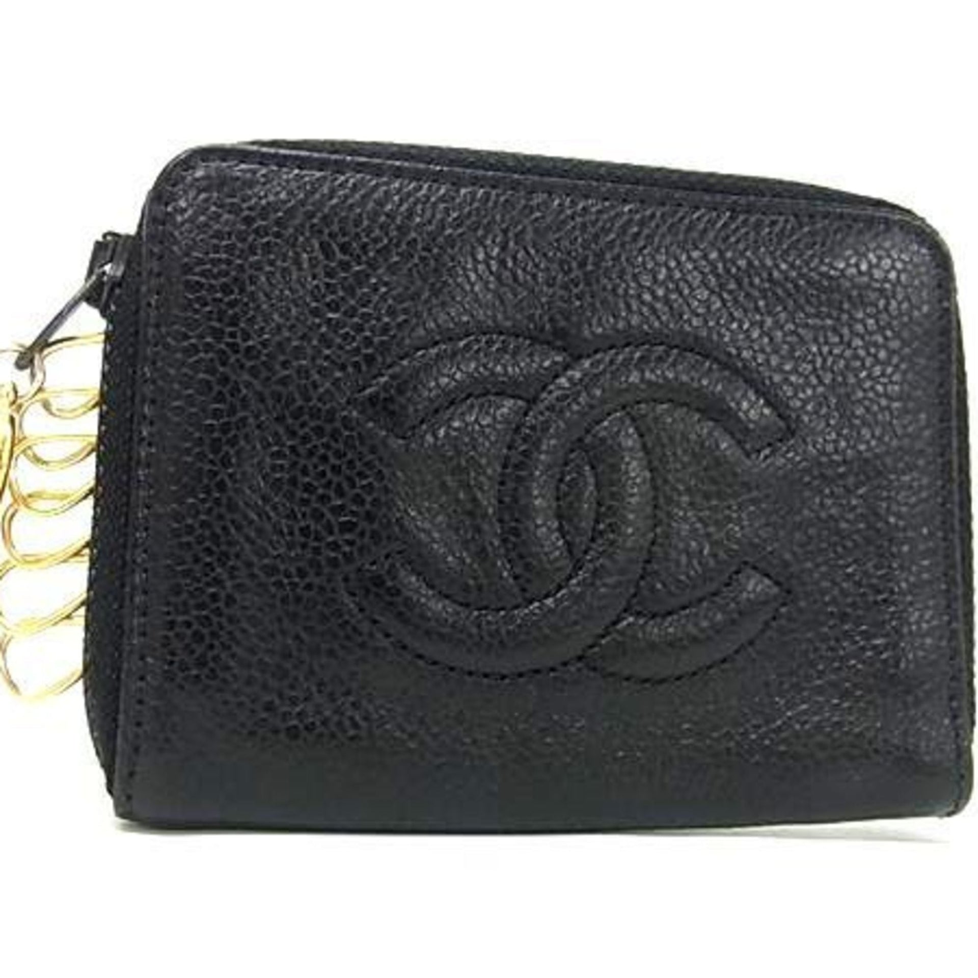 CHANEL Coco Mark Black Caviar Leather Key Case, Round, 6-Ring, for Men and Women