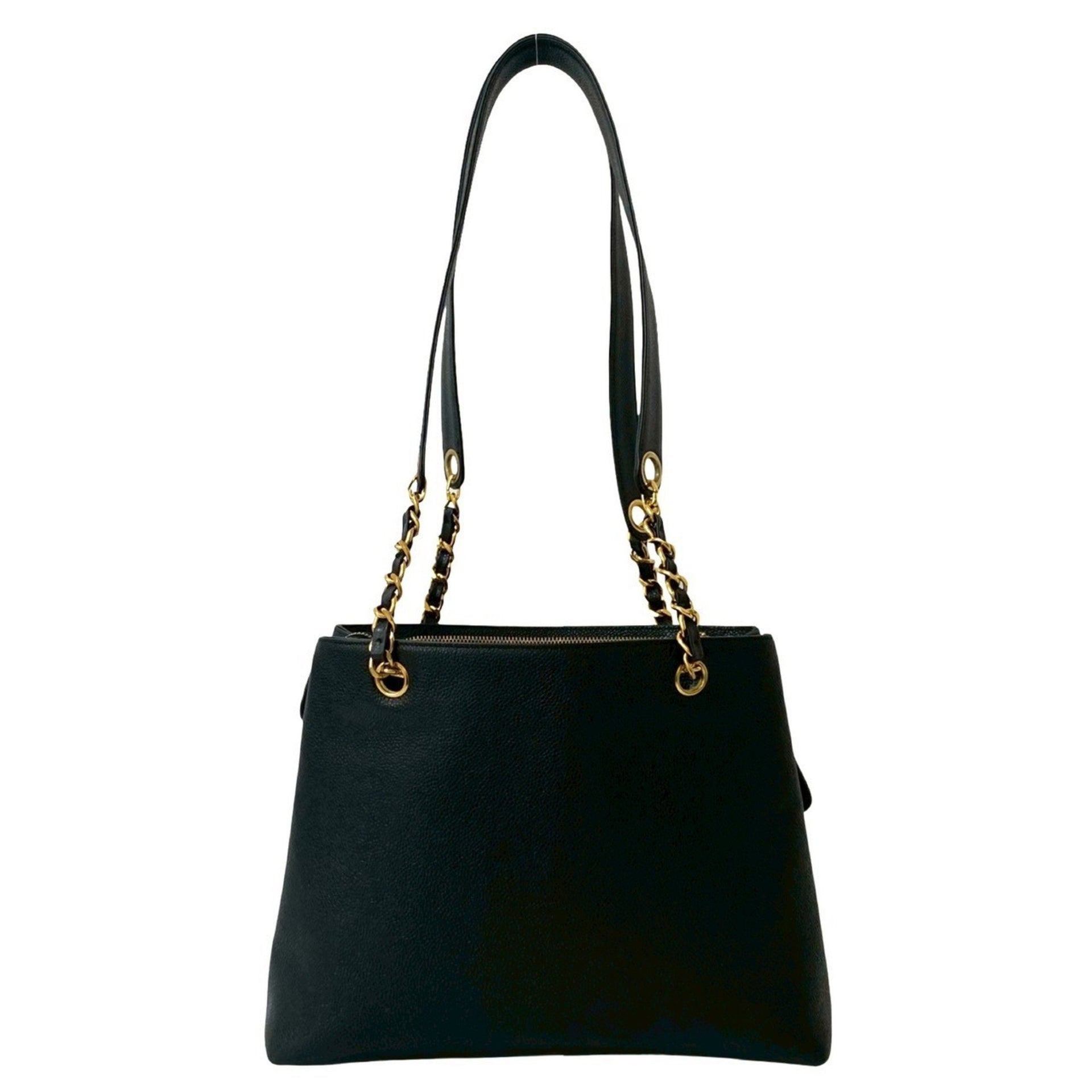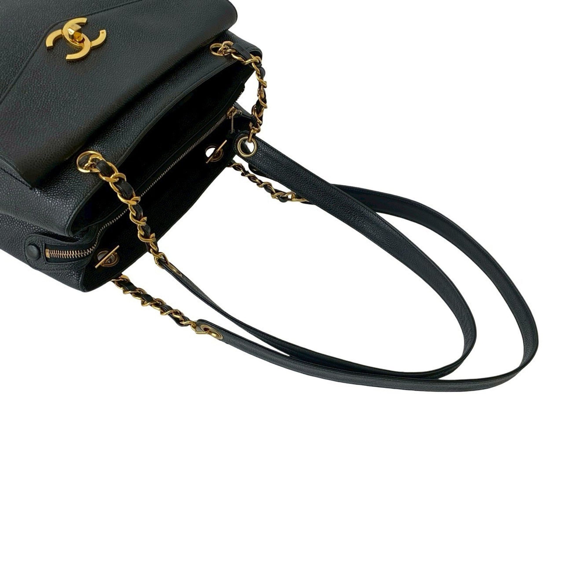 CHANEL Coco Mark Caviar Leather Chain Semi Shoulder Bag Tote Black 34408