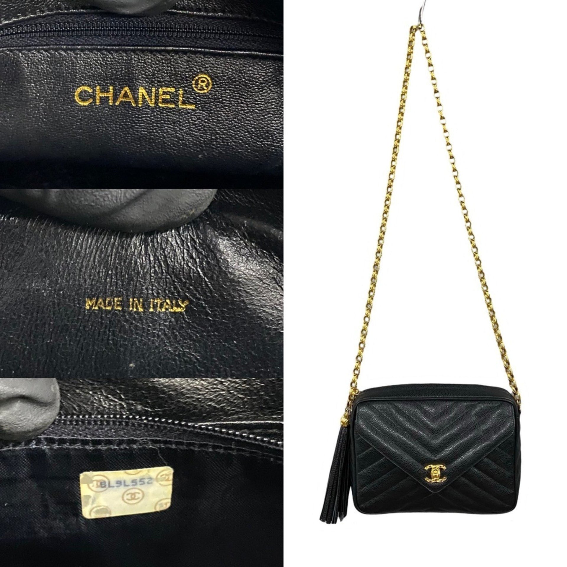 CHANEL Coco Mark Caviar Leather Turnlock Chain Shoulder Bag Black 31992