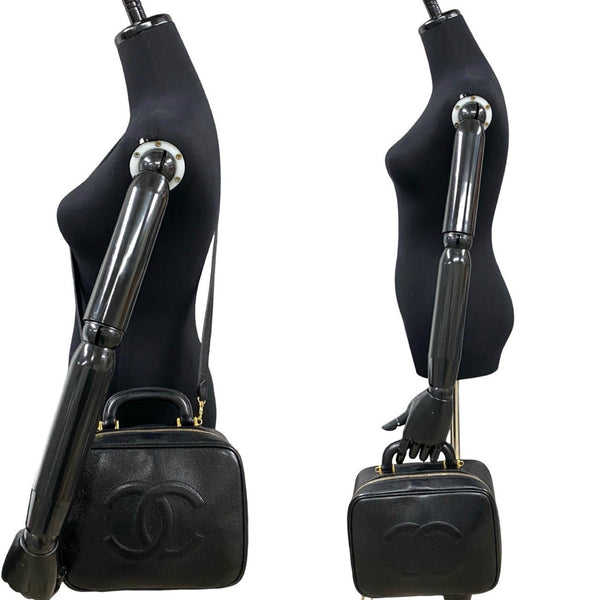 CHANEL Coco Mark Caviar Skin 2-Way Shoulder Bag Vanity Handbag 98559