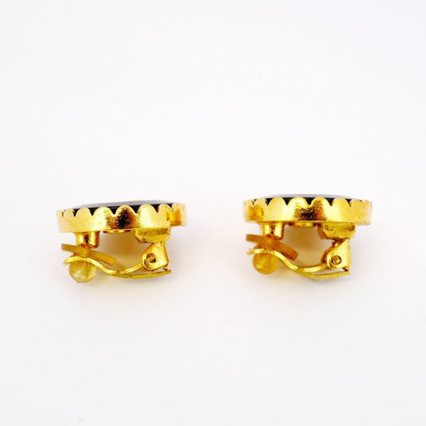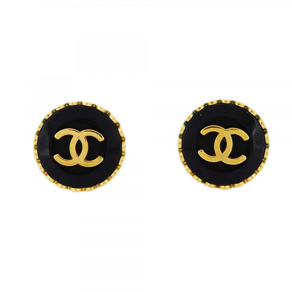 Chanel Coco Mark Circle Earrings, GP Plated Gold and Black, Women\'s