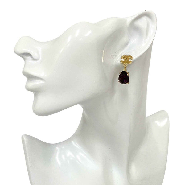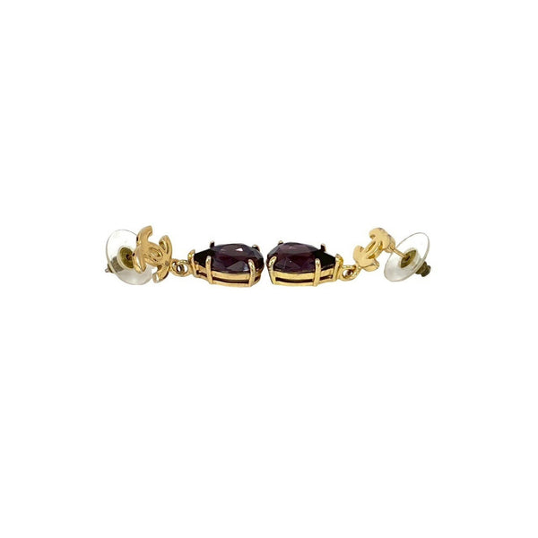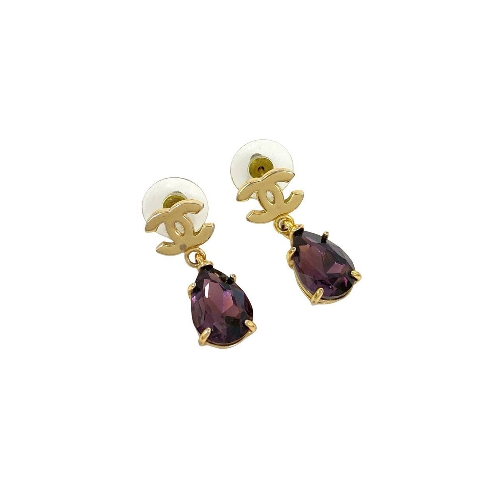 CHANEL Coco Mark Color Stone Earrings for Women, Gold and Purple, 155-3