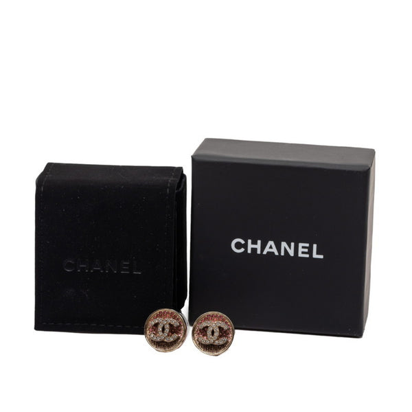 Chanel Coco Mark Earrings, Gold and Pink Plated Rhinestones, Women\'s CHANEL