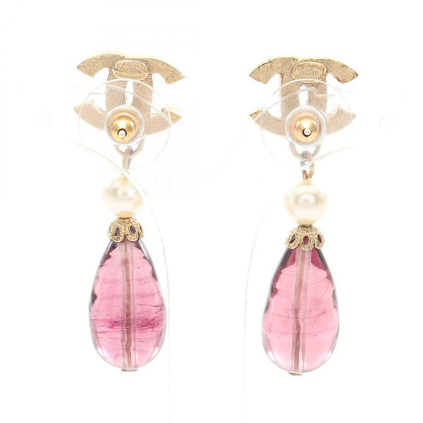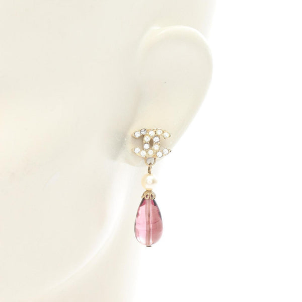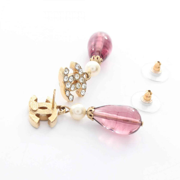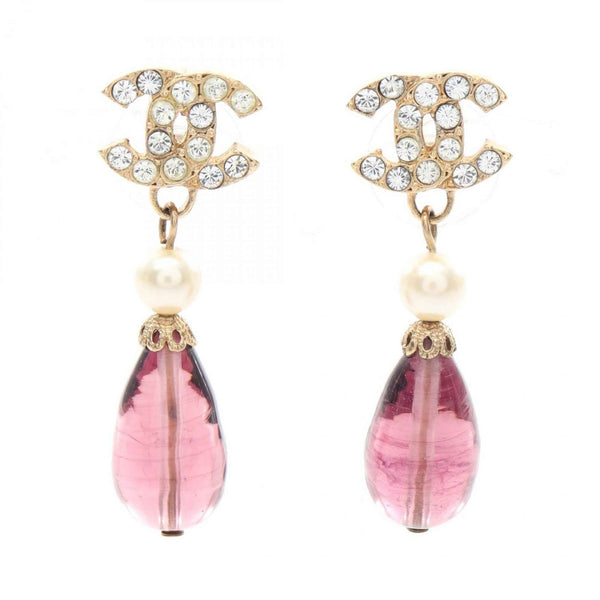 CHANEL Coco Mark Earrings, Gold Plated, Crystal and Rhinestone Design, Women\'s, Gold, Purple, Clear