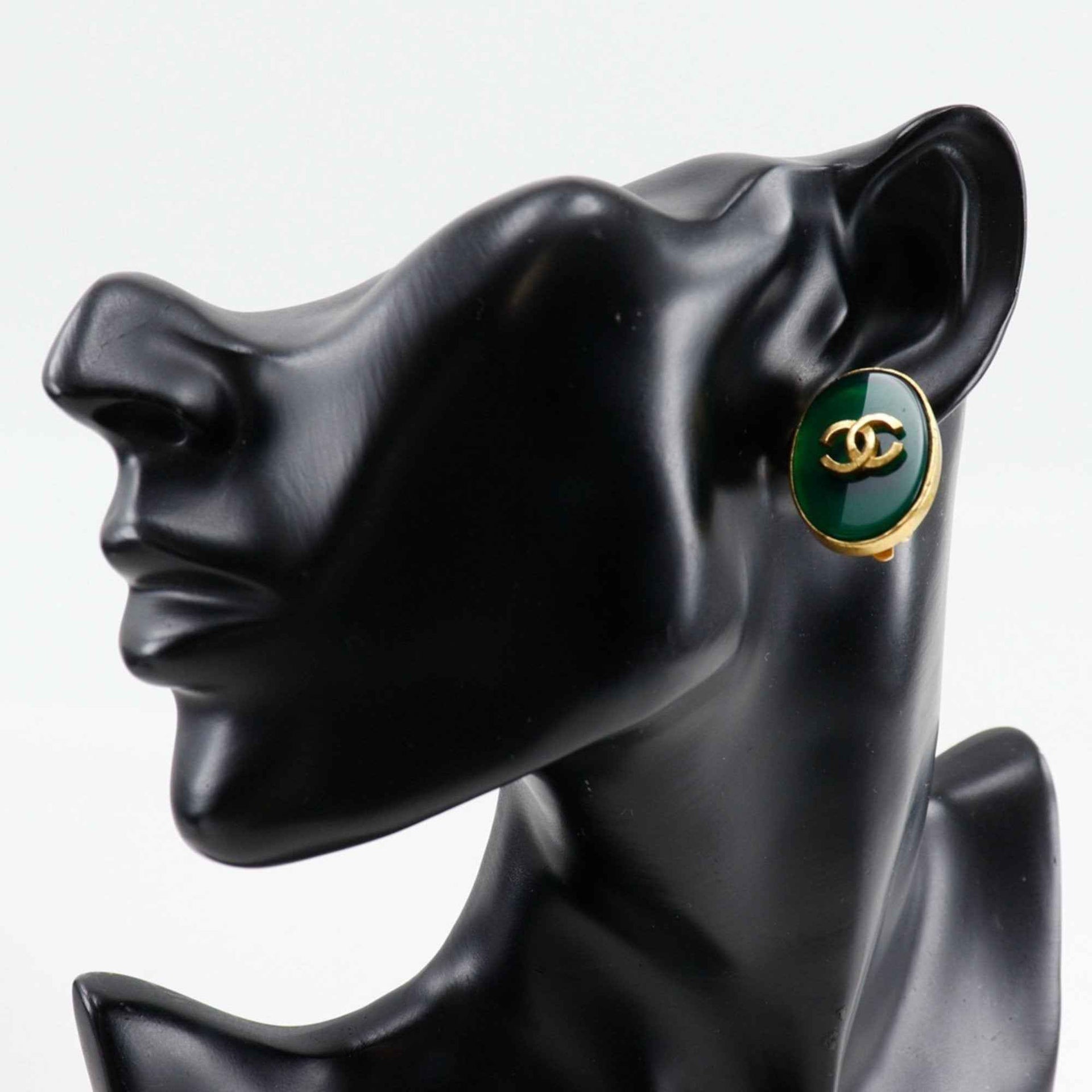 CHANEL COCO Mark Earrings, Gold Plated, Green Gold, Approx. 18.72g, Women\'s