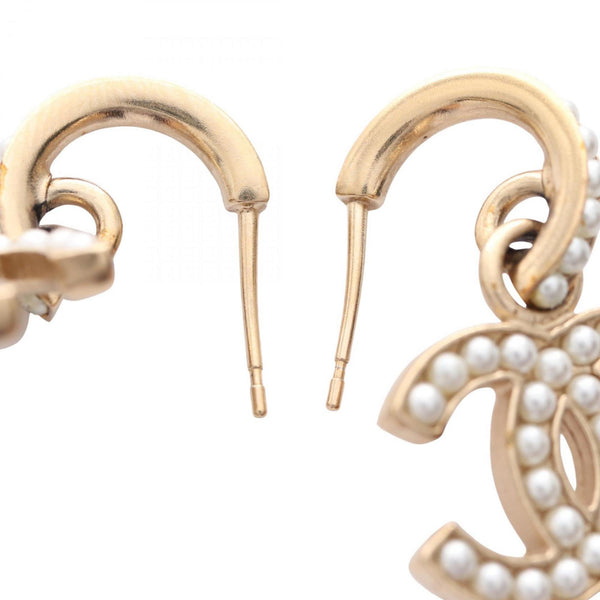 CHANEL Coco Mark Earrings, Gold Plated with Faux Pearls, Women\'s, and White