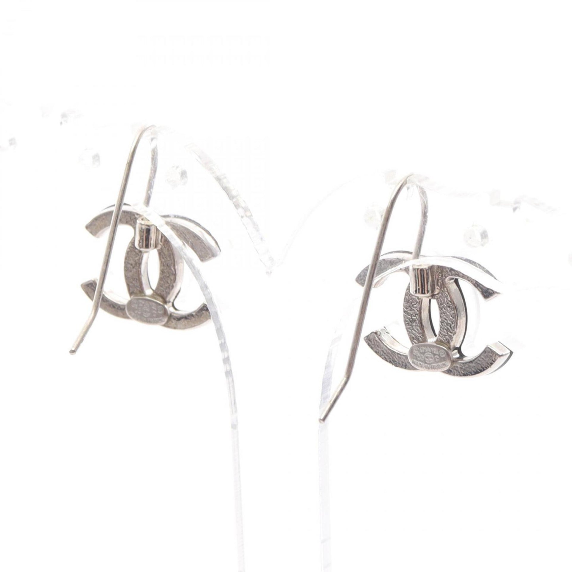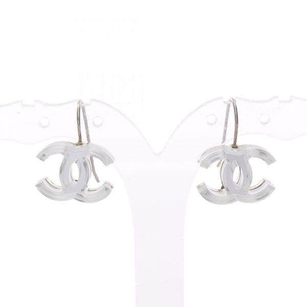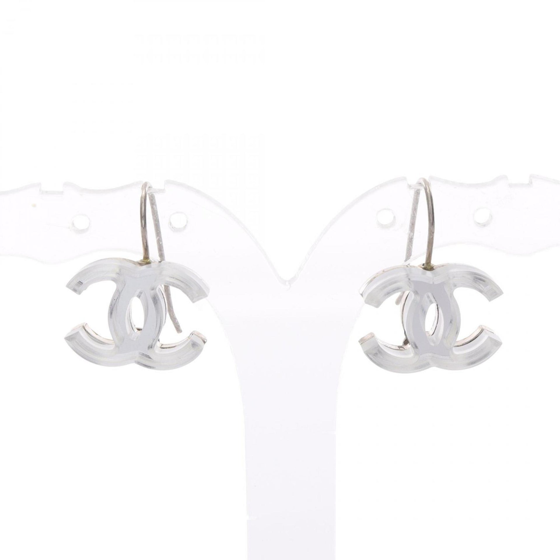 Chanel Coco Mark earrings, stainless steel and plastic, available in clear silver.