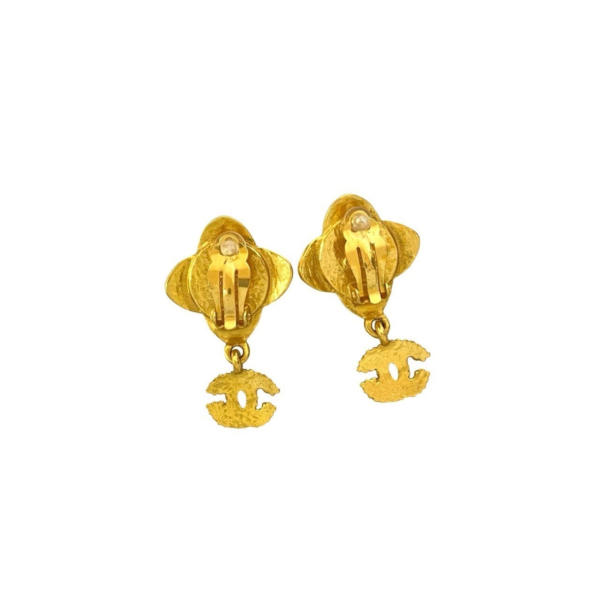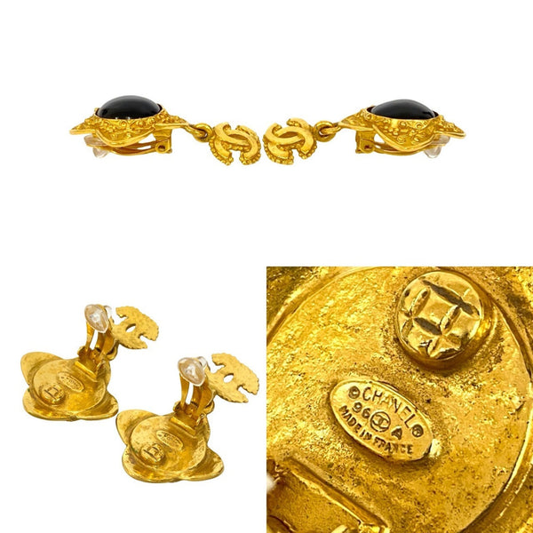 CHANEL Coco Mark GP Earrings Ear Cuff Gold Black 87951