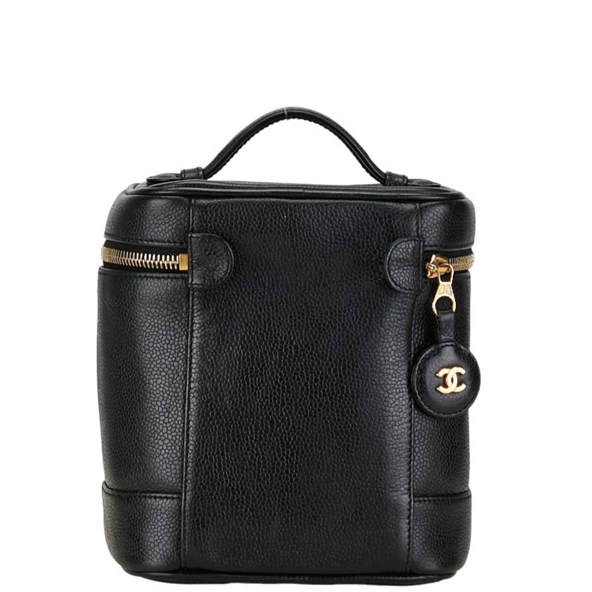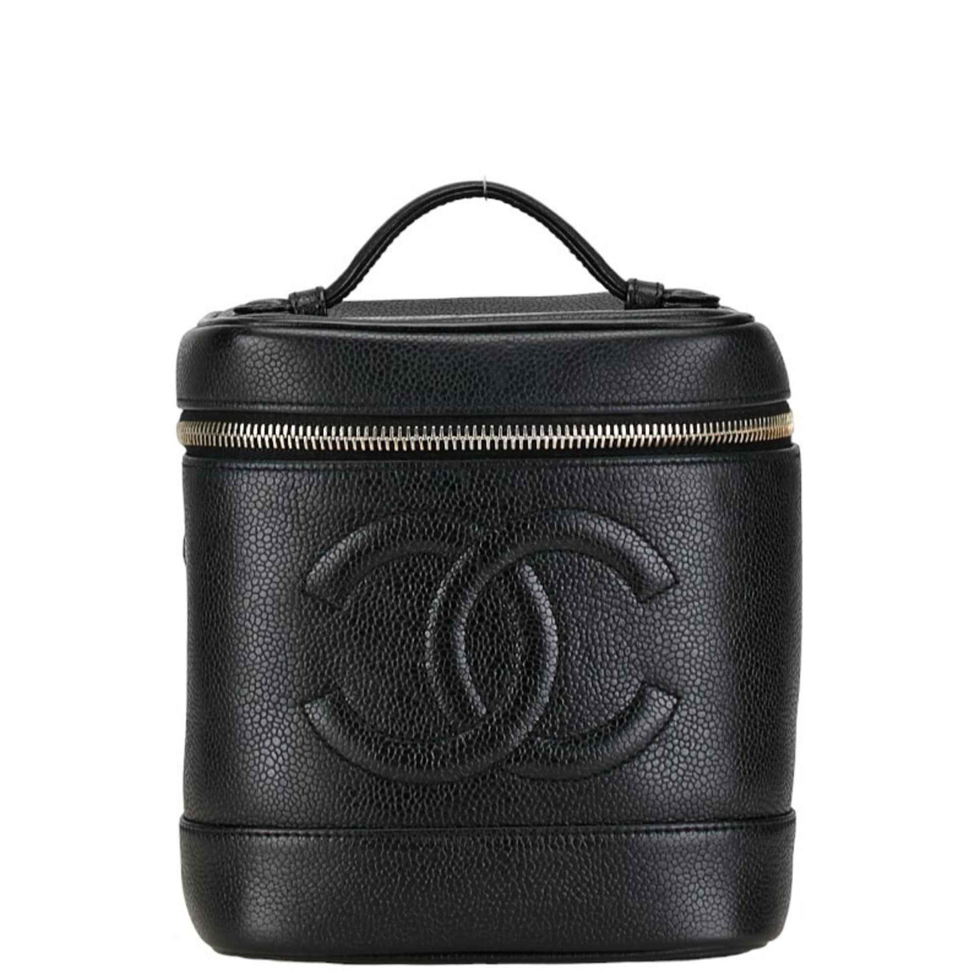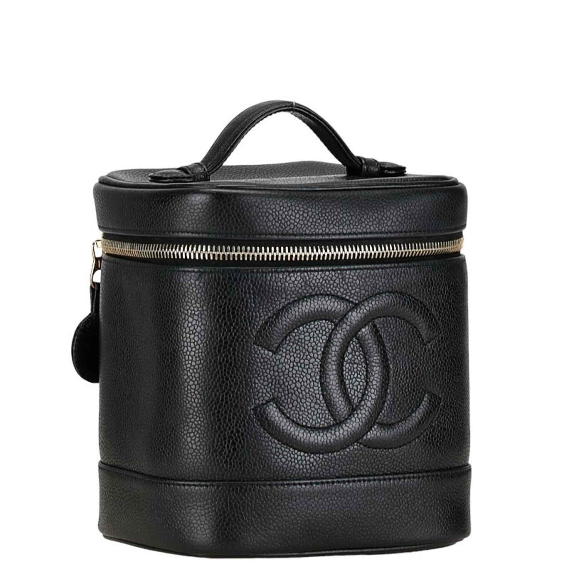 Chanel Coco Mark Handbag Vanity Bag Black Gold Caviar Skin Women\'s CHANEL
