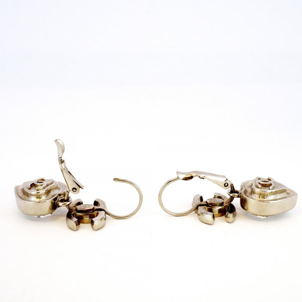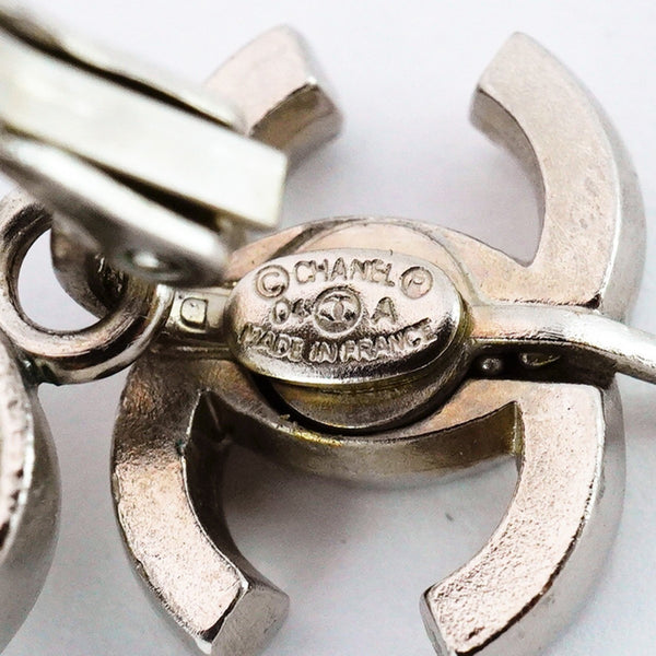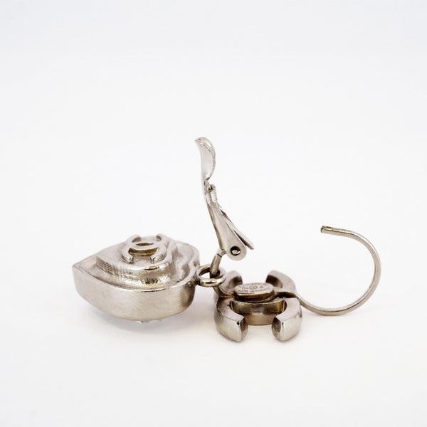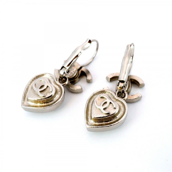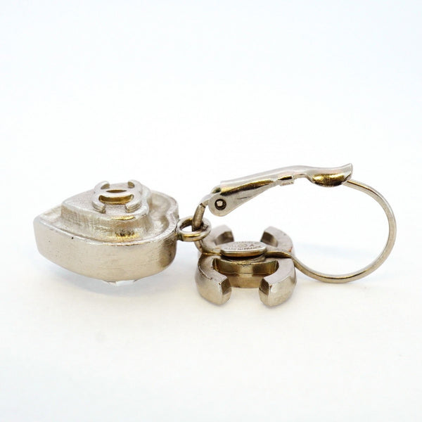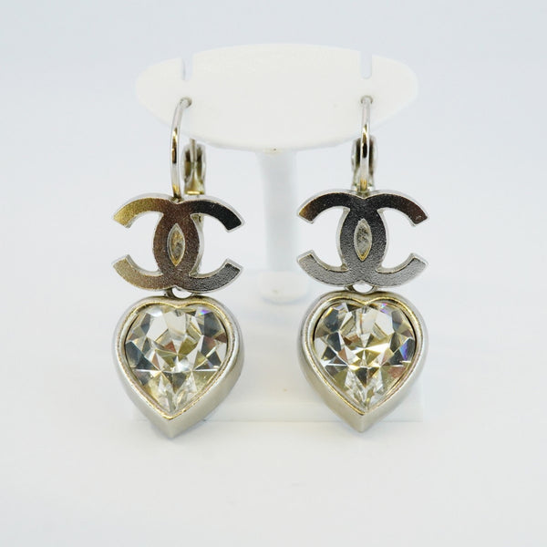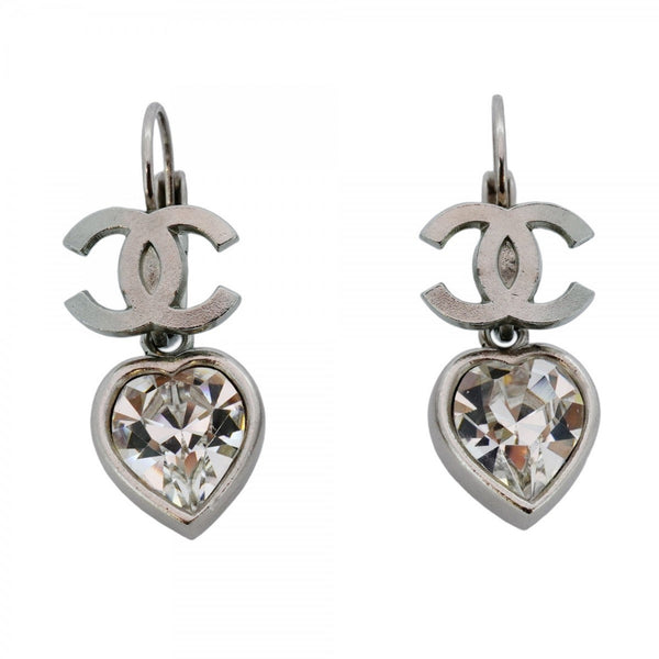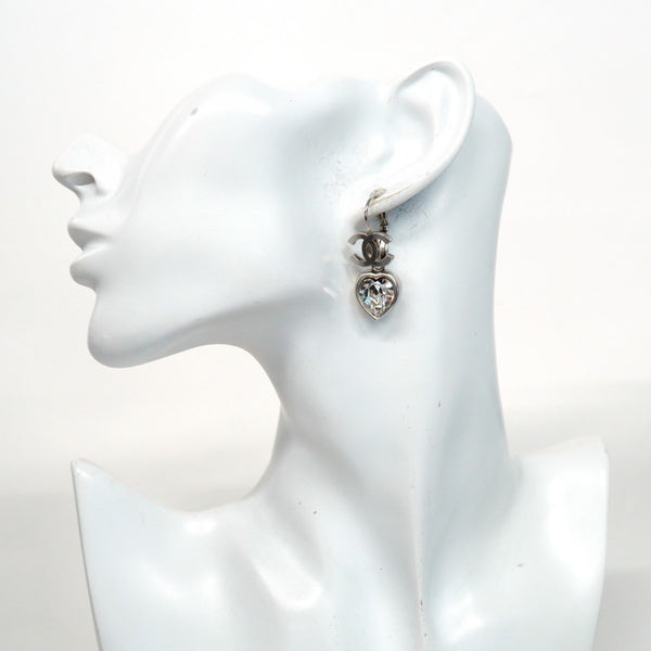 Chanel Coco Mark Heart Motif Metal Rhinestone Silver Earrings for Women