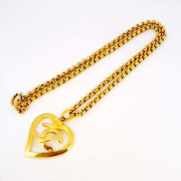 Chanel Coco Mark Heart Necklace, GP Plated Gold, Women\'s