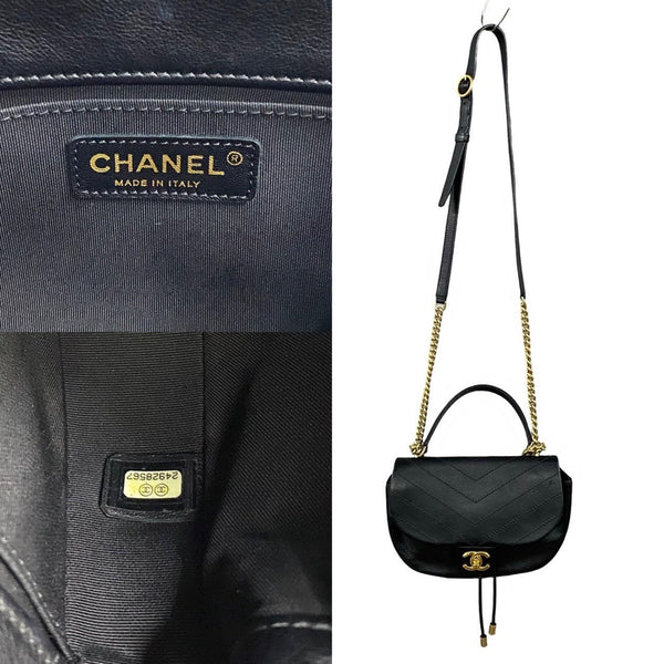 CHANEL Coco Mark Leather Genuine 2-Way Shoulder Bag/Handbag/Sacoche Black 30375
