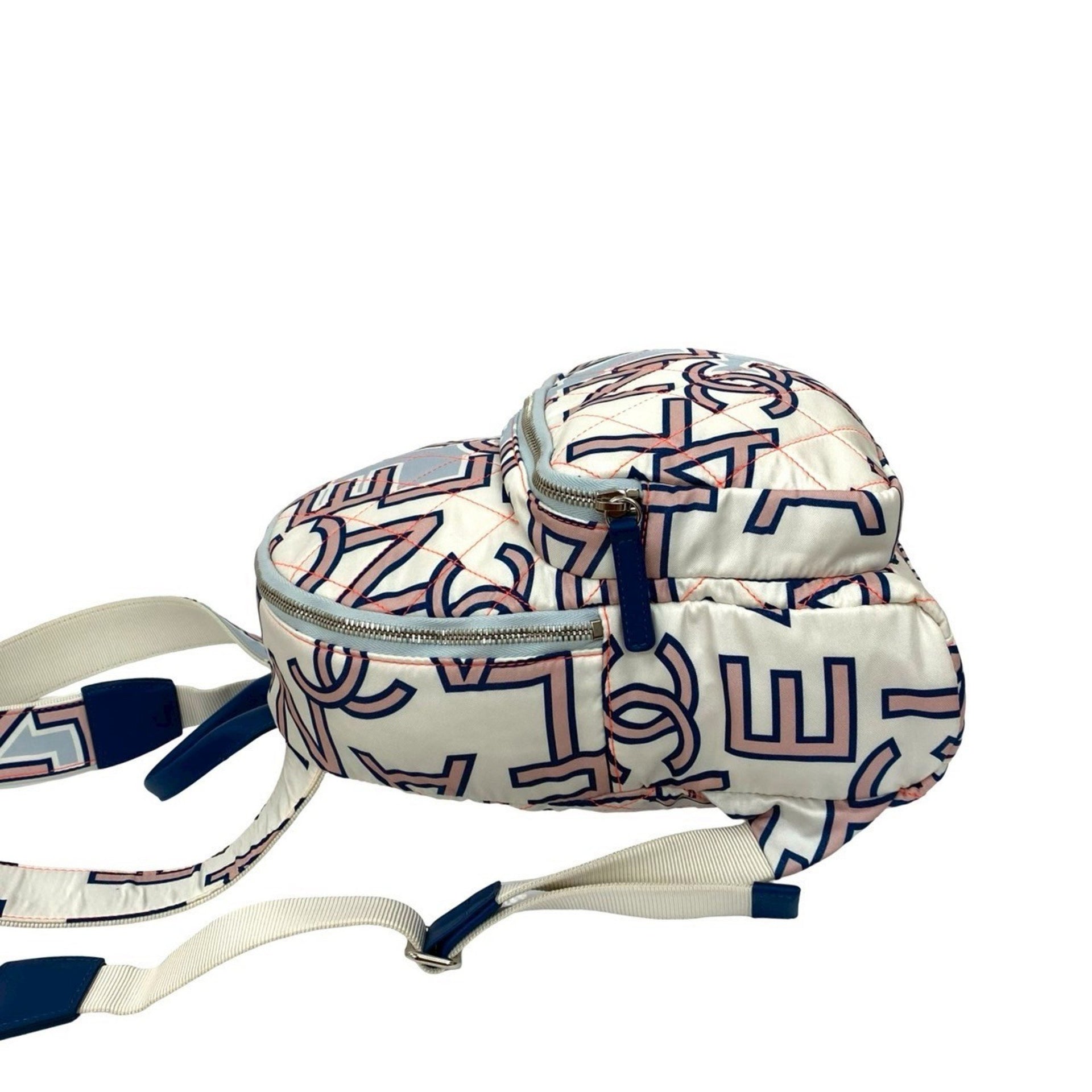 CHANEL Coco Mark Logo Neon Quilted Cotton and Leather Mini Backpack, Blue, 42549