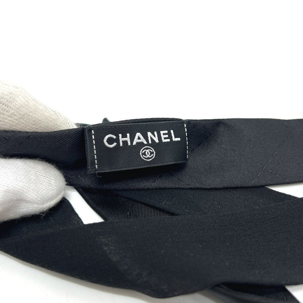 CHANEL Coco Mark Matelasse Apparel Accessory Scarf Bow Tie Silk Women\'s Black Like New