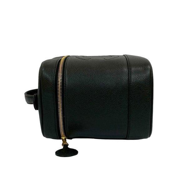 CHANEL Coco Mark Matte Caviar Leather Handbag Vanity Bag Black 69948