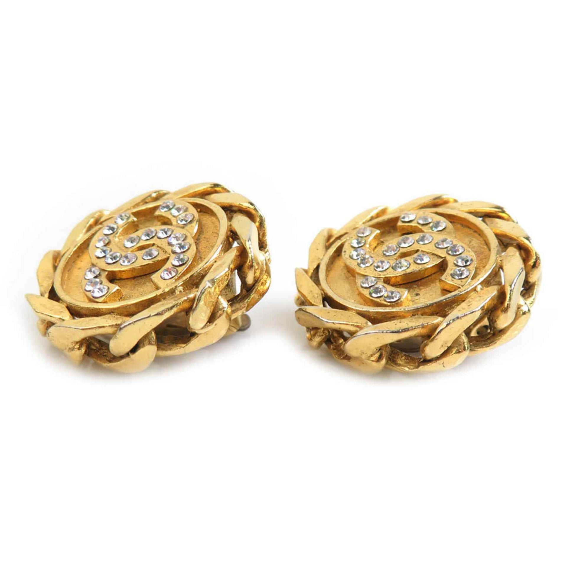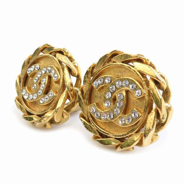 CHANEL Coco Mark Metal Rhinestone Earrings in Gold and Silver for Women, e60982a