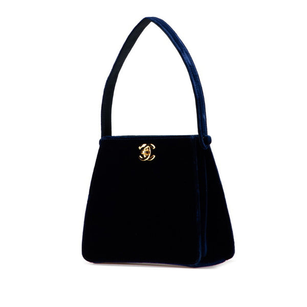 Chanel Coco Mark Mini Handbag Navy Velour Women\'s CHANEL