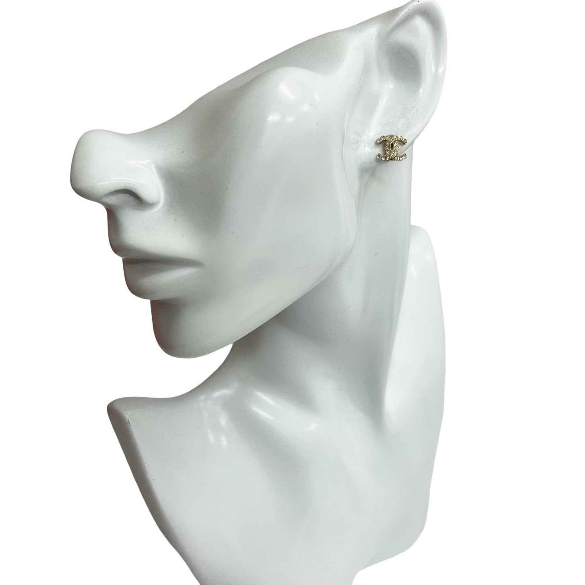 CHANEL Coco Mark motif rhinestone earrings, gold, 80703