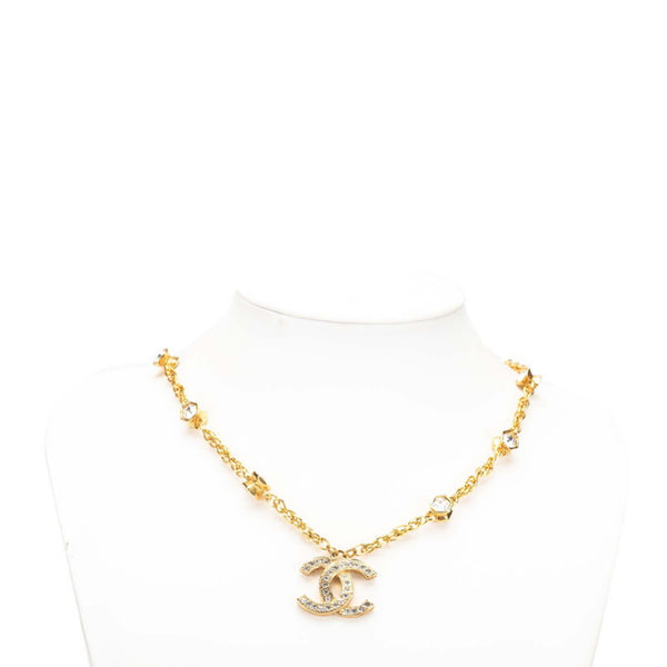Chanel Coco Mark Pendant Necklace, Gold Plated with Rhinestones, Women\'s, CHANEL