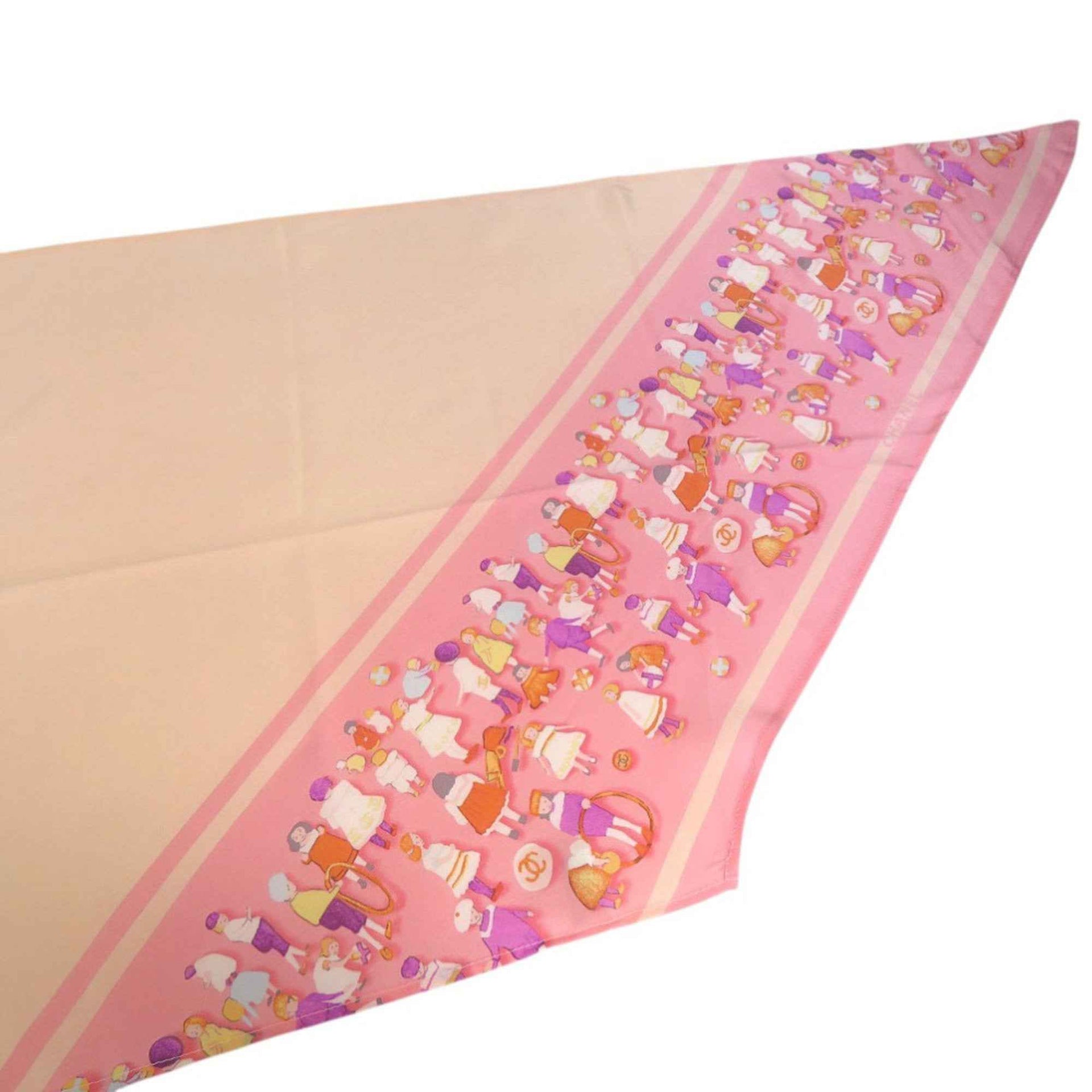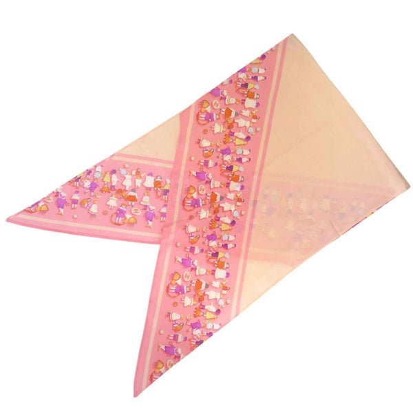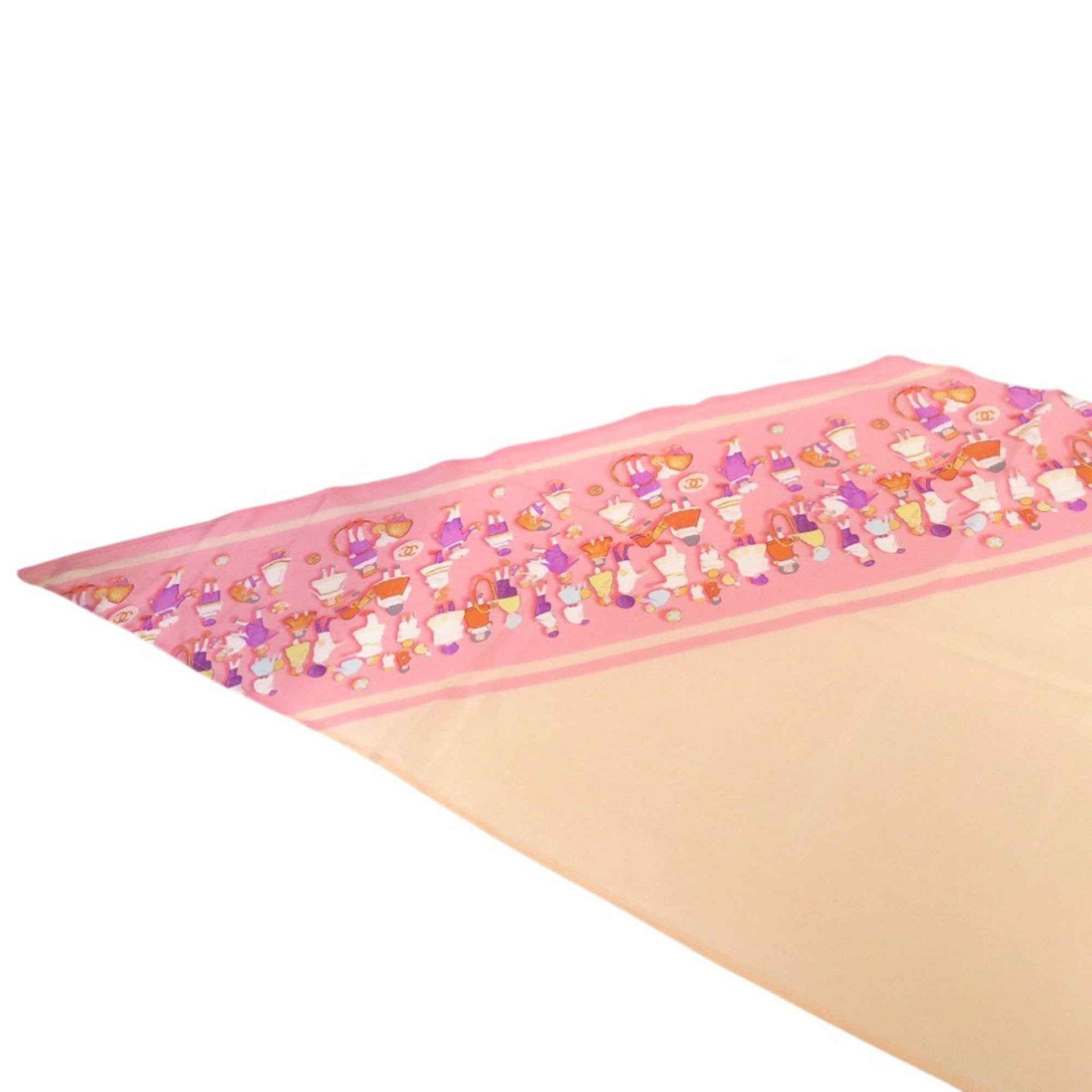 Chanel Coco Mark Scarf/Muffler, Striped, Children\'s, Vintage, Silk, Pink, 0139, CHANEL
