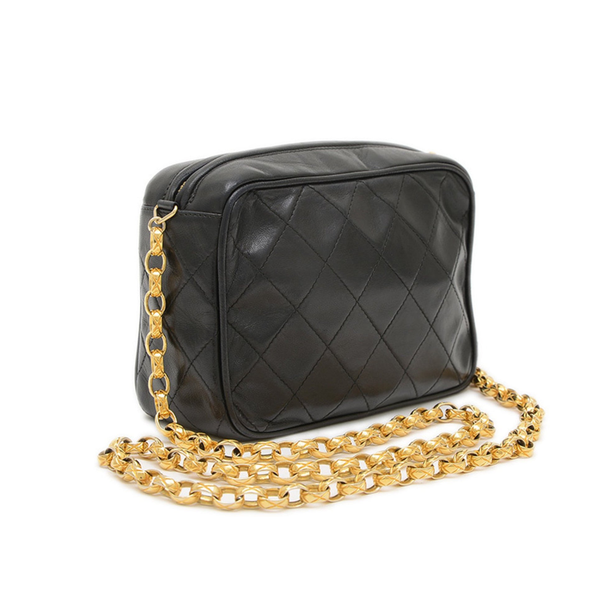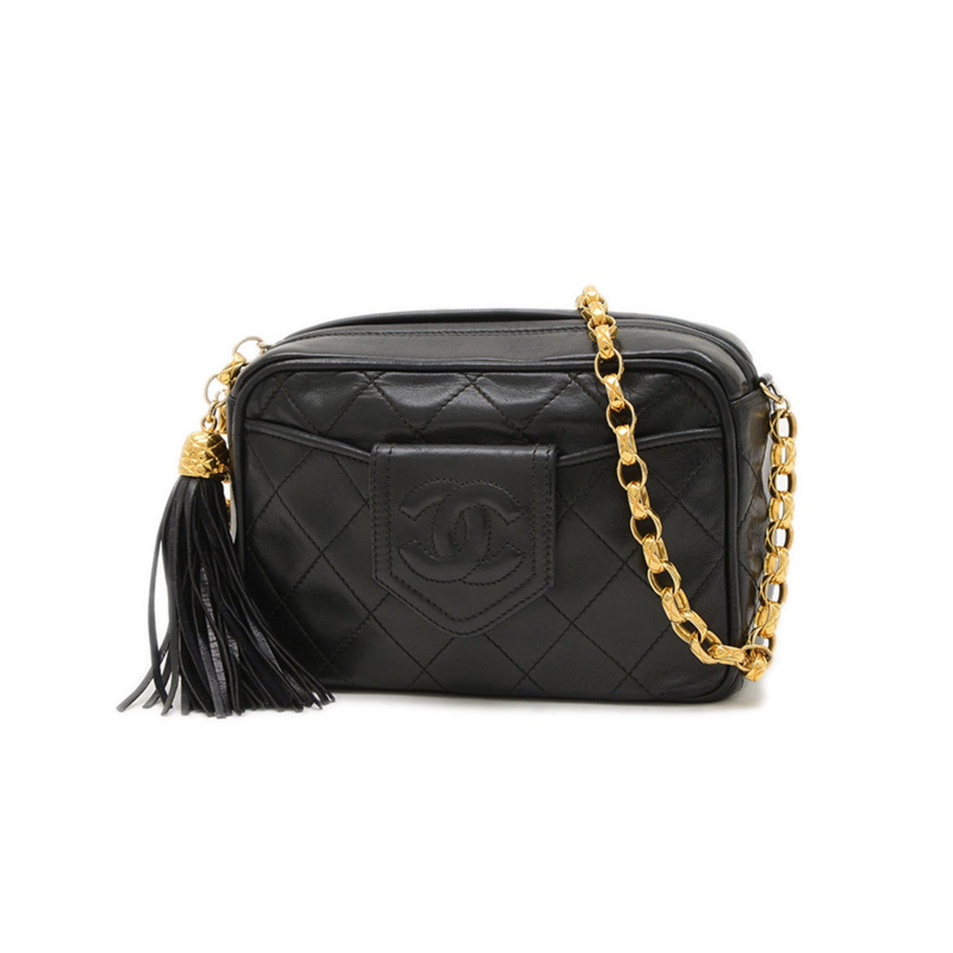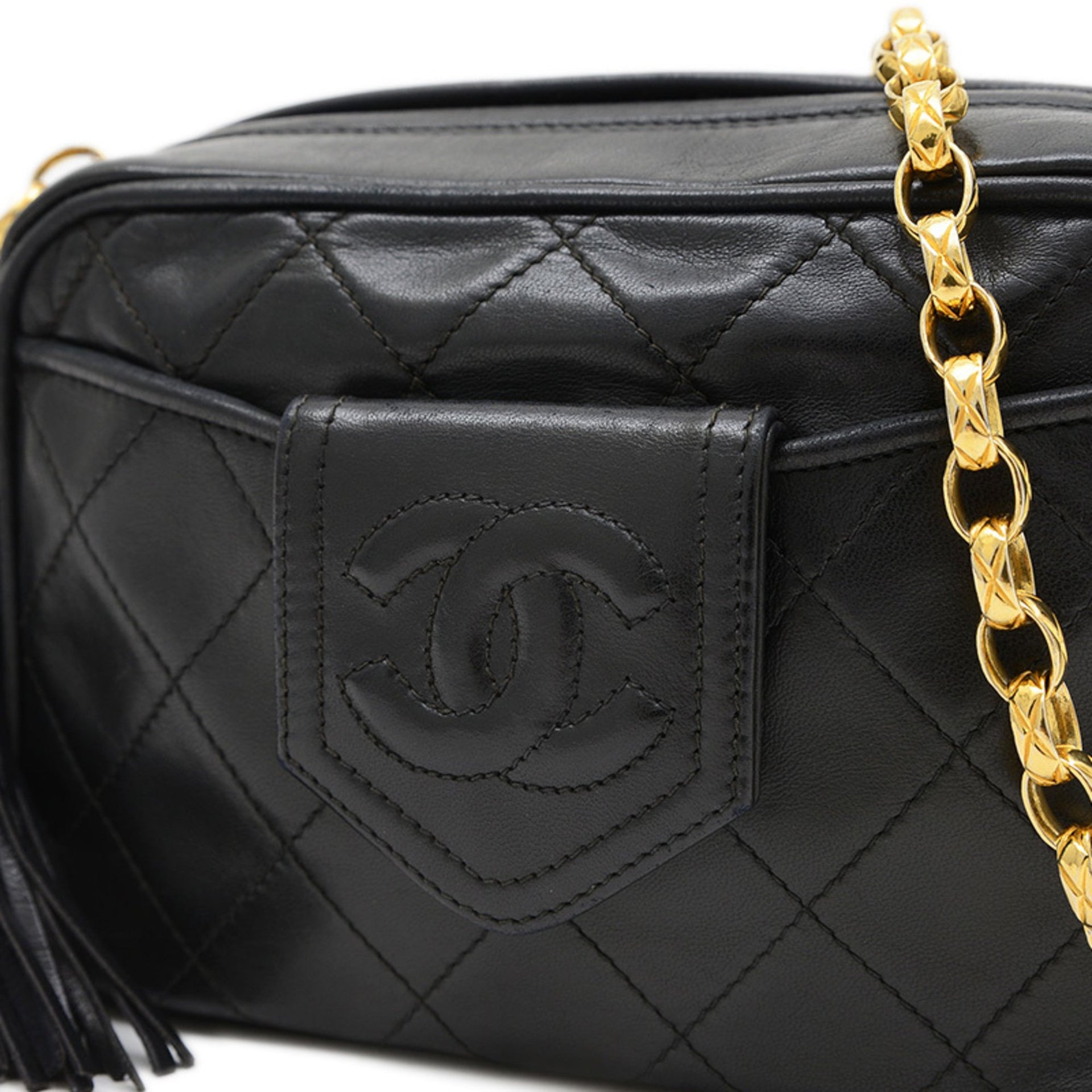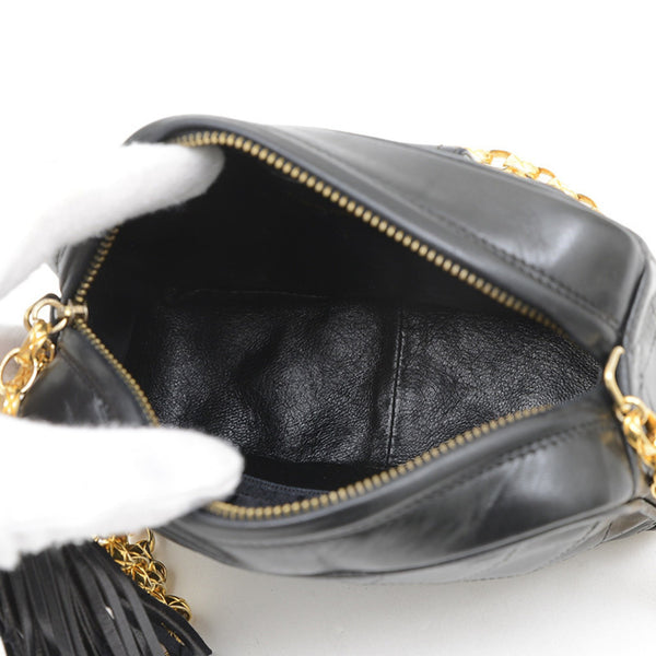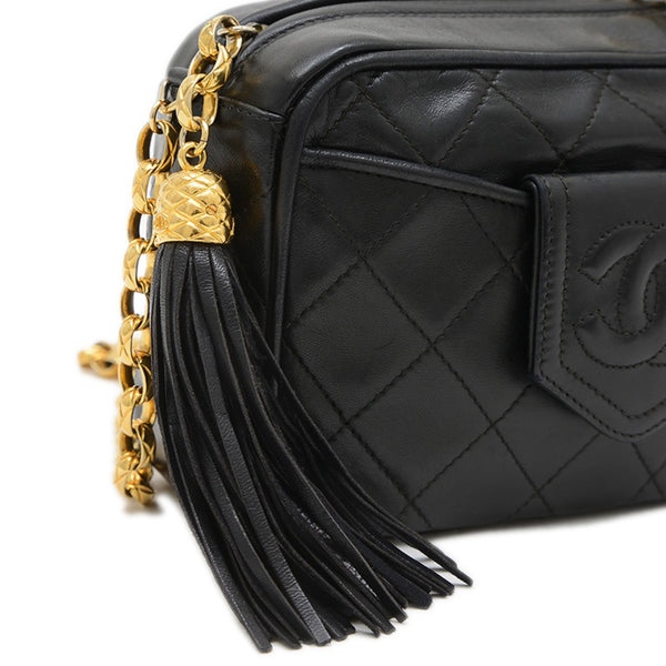 Chanel Coco Mark Tassel Chain Shoulder Bag Lambskin Black Gold Hardware BP