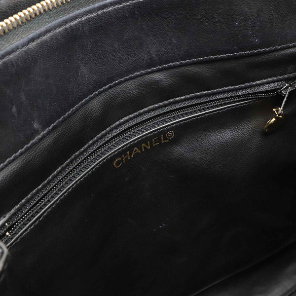 CHANEL Coco Mark Tote Bag Shoulder Lambskin Leather Black