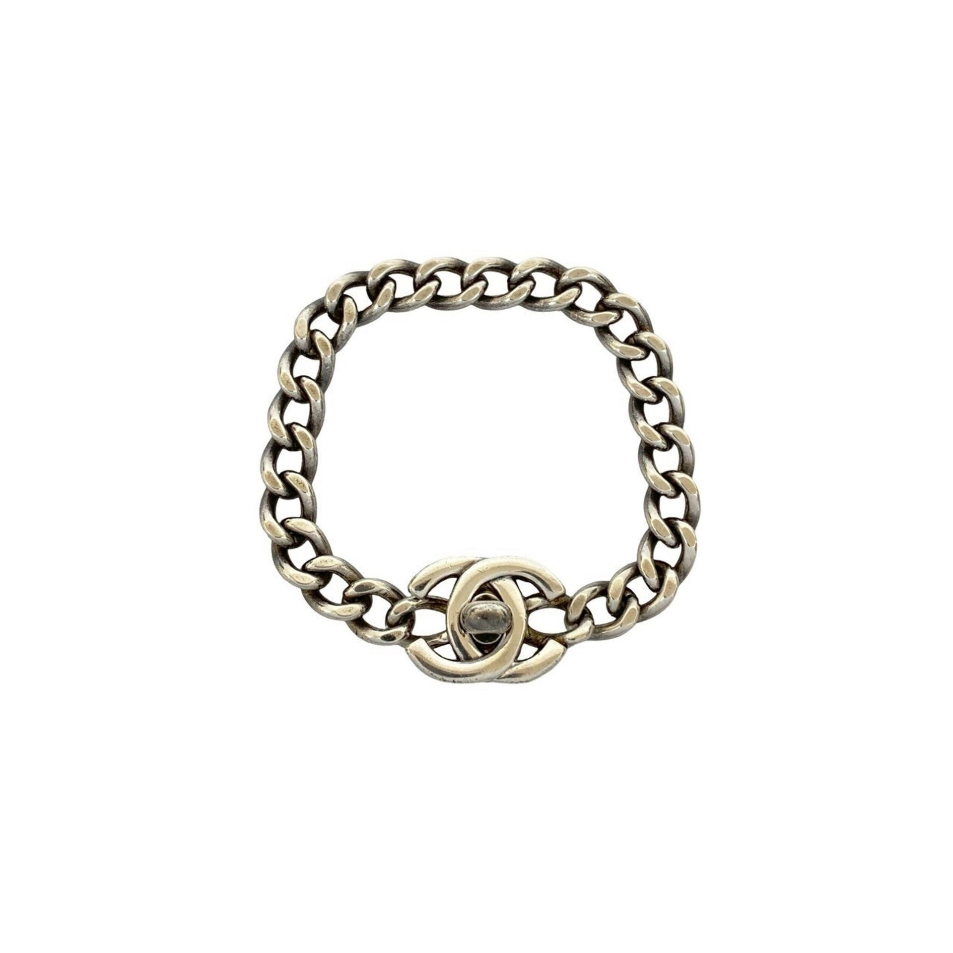 CHANEL Coco Mark Turnlock Bracelet, Silver-Plated Chain Silver, 68235