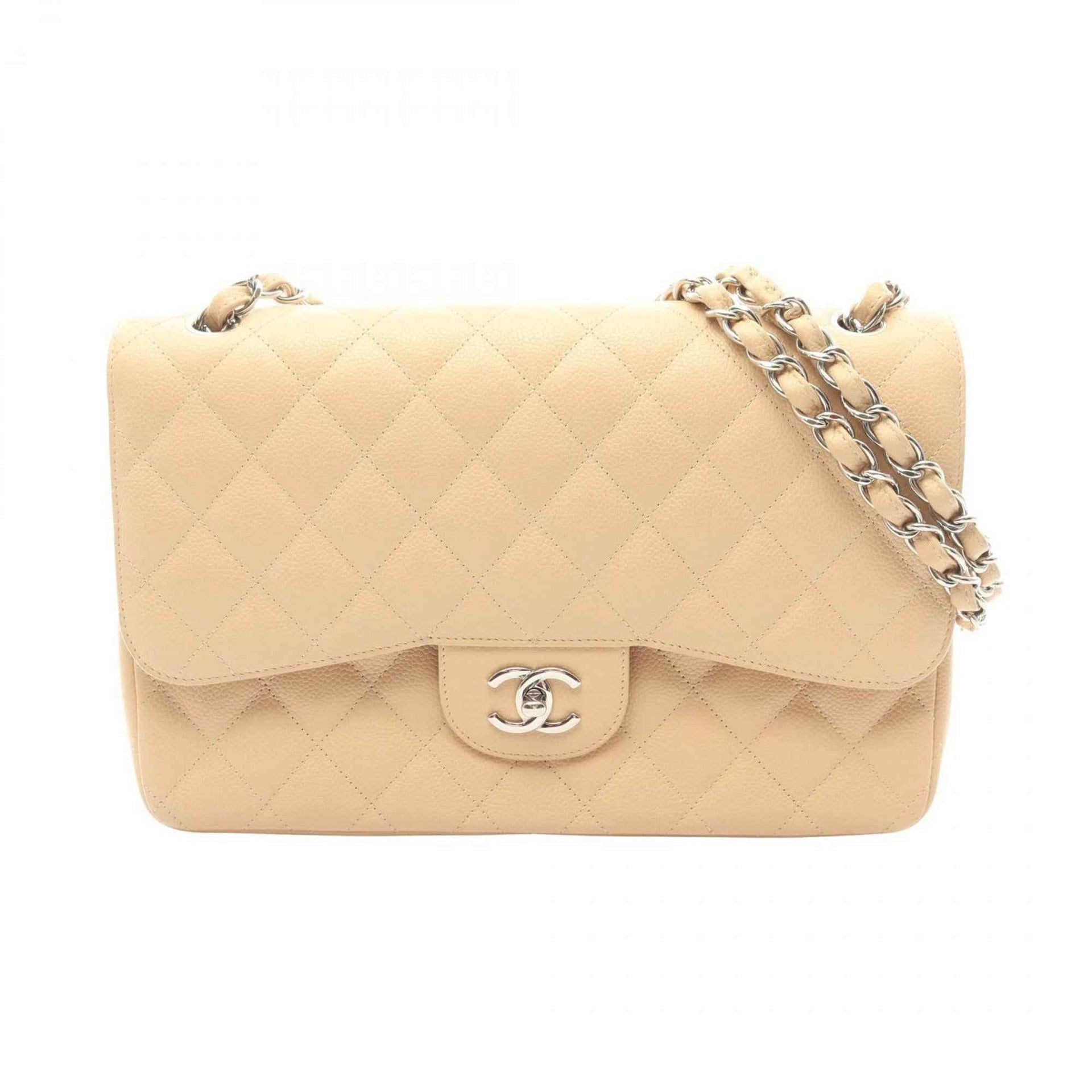 CHANEL Deca Matelasse 30 Classic Large Double-Flap Shoulder Bag in Calfskin Leather, Beige, Women\'s, A58600