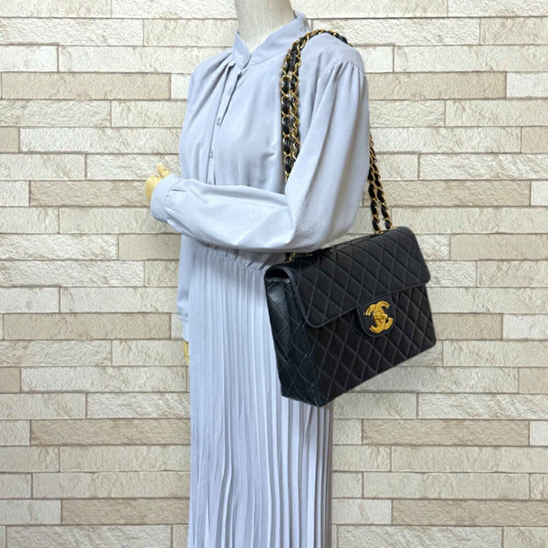 Chanel Deca Matelasse Shoulder Bag Lambskin Black Women\'s CHANEL Double Chain