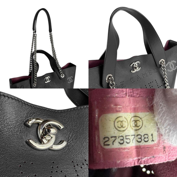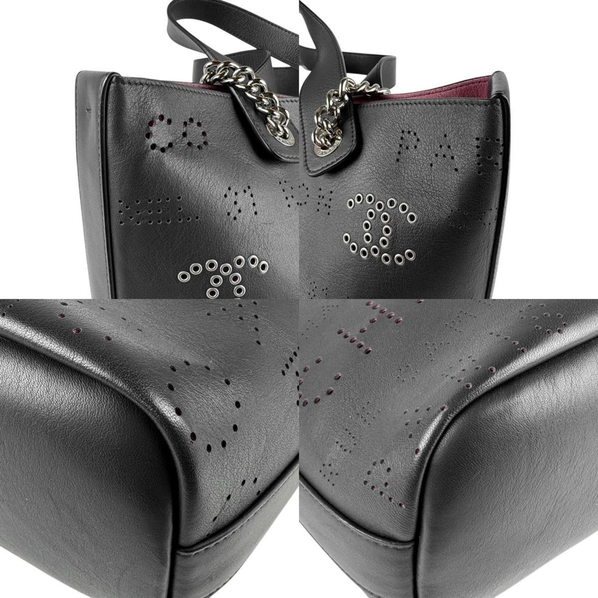 CHANEL handbag shoulder bag leather navy silver ladies n1168