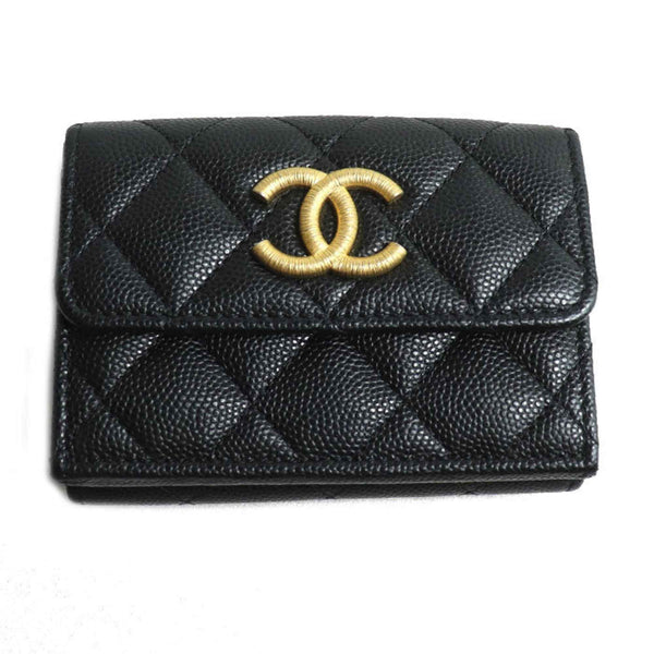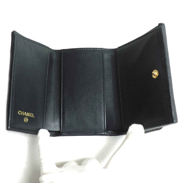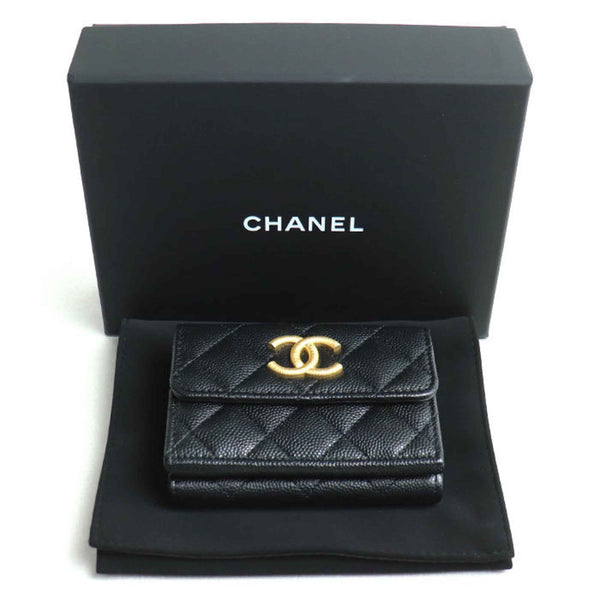 CHANEL Matelasse Caviar Skin Compact Wallet, Tri-fold Black, AP3518, Women\'s