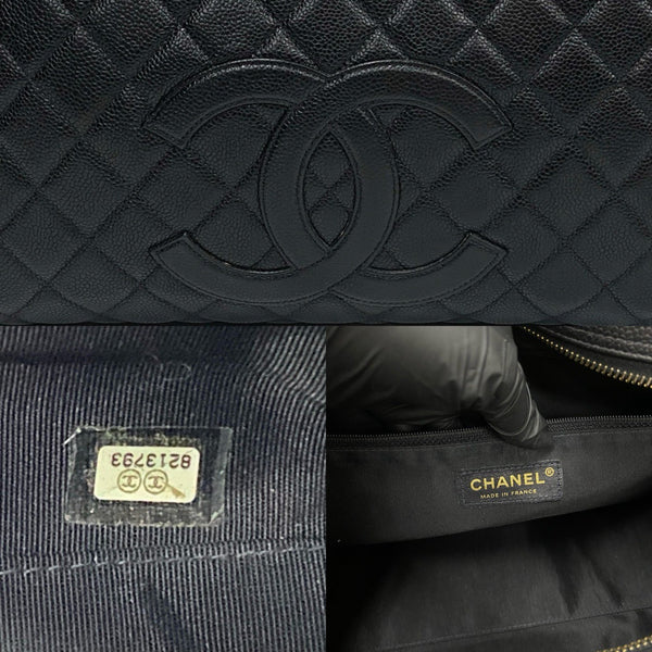 CHANEL Matelasse Coco Mark Caviar Skin Boston Bag Handbag Black 94272