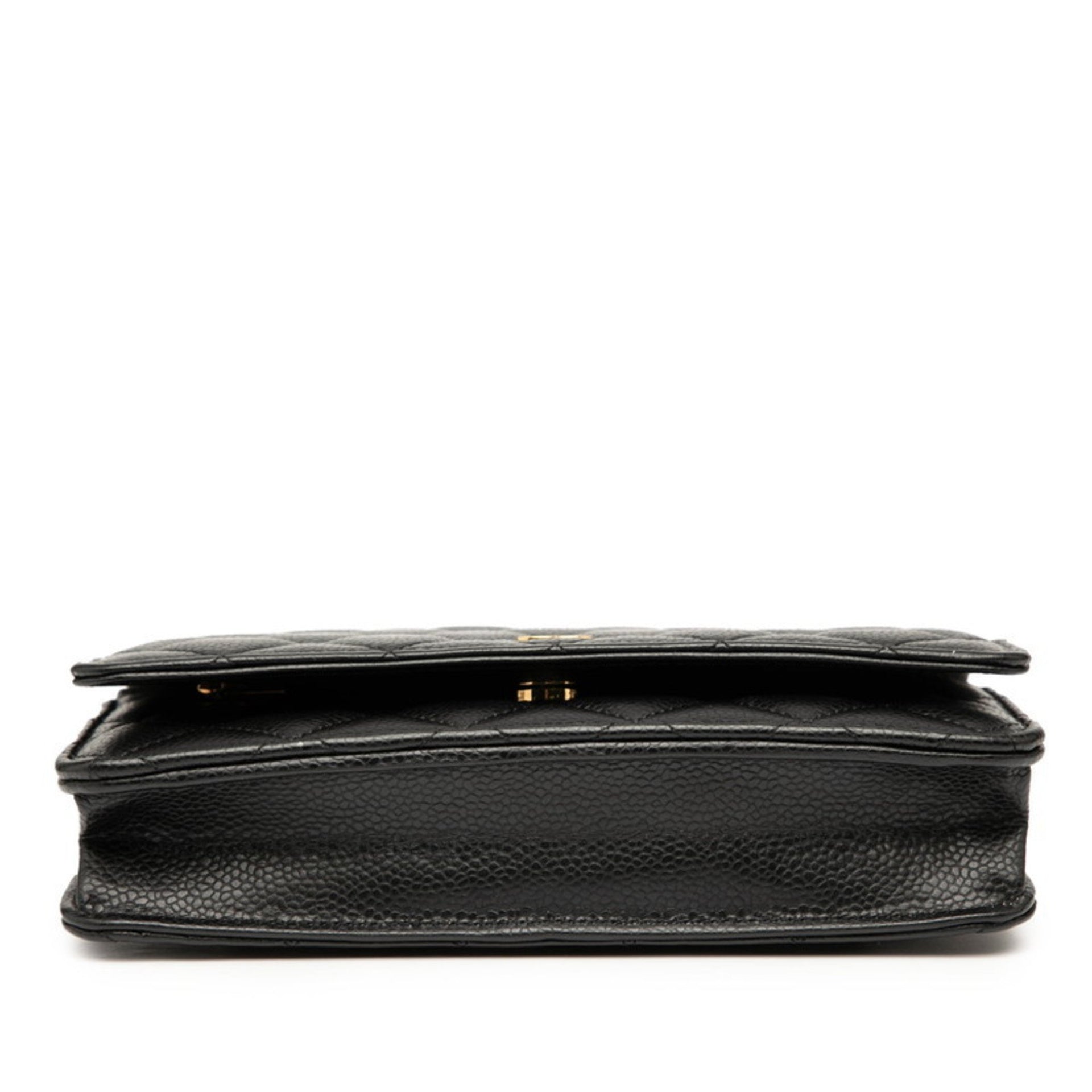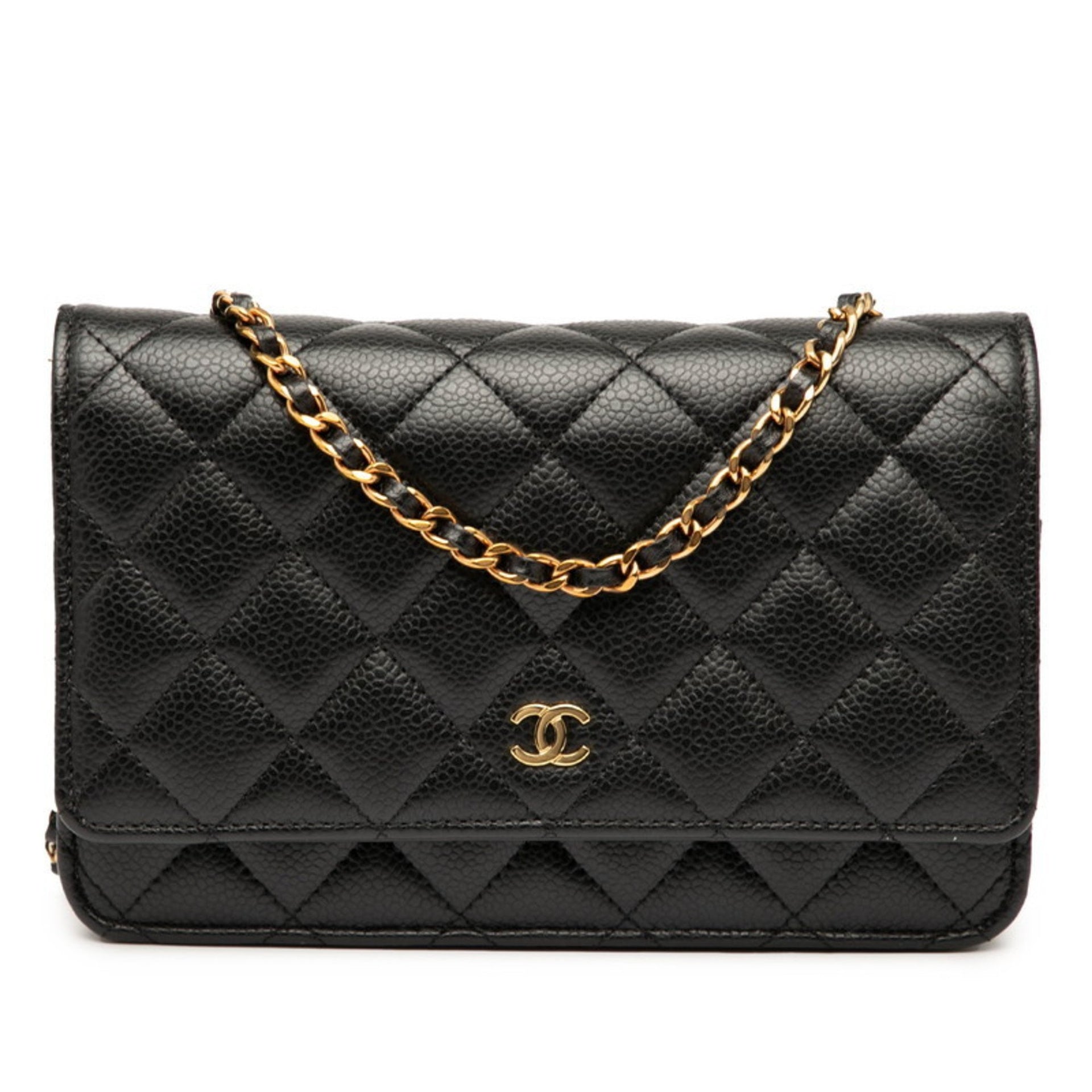 CHANEL Matelasse Coco Mark Chain Wallet Shoulder Bag in Black Caviar Skin for Women
