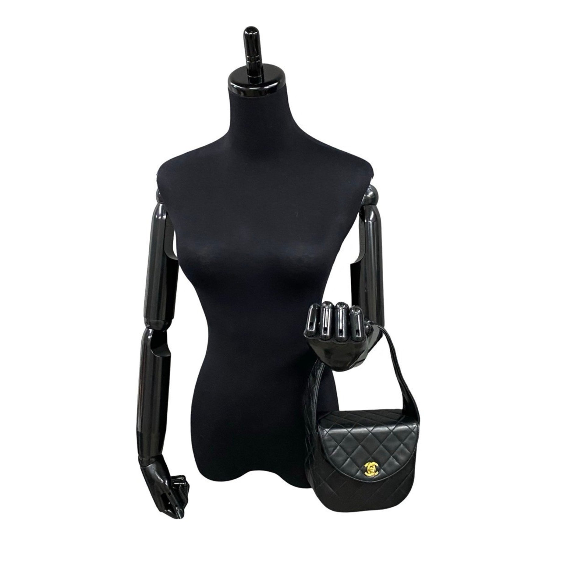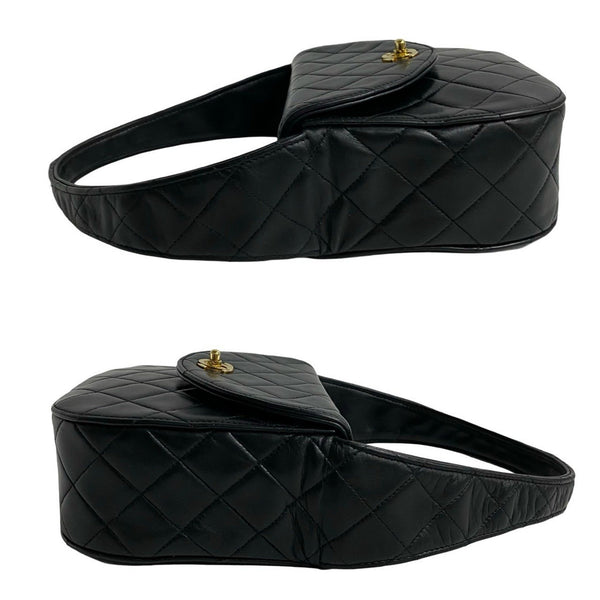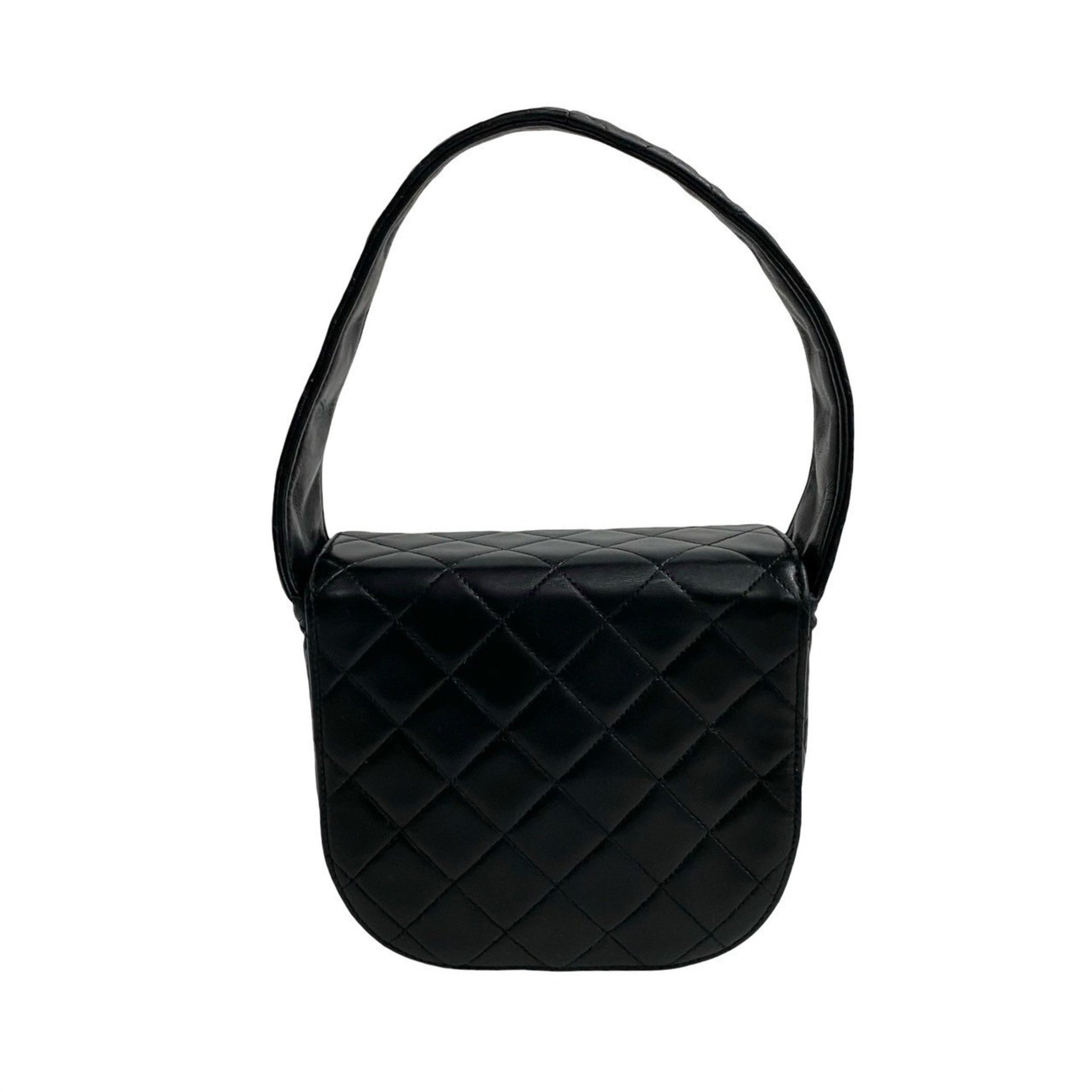CHANEL Matelasse Coco Mark Lambskin Handbag Mini Tote Bag Black i14-8