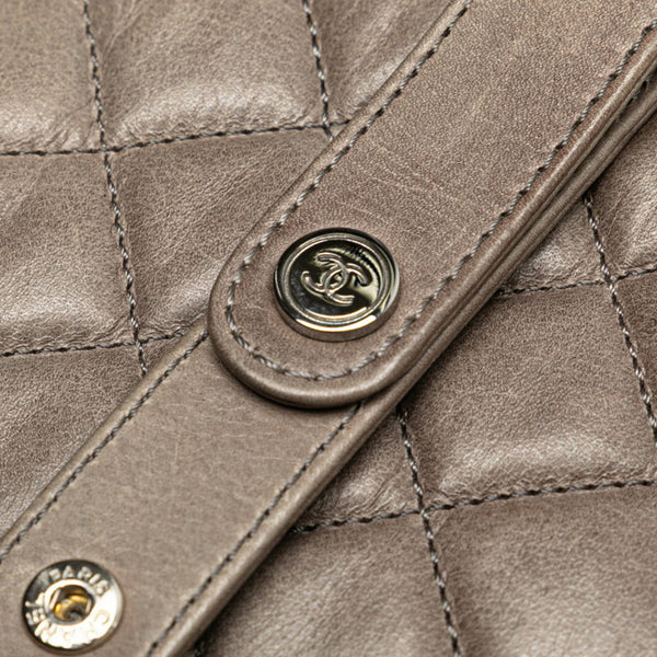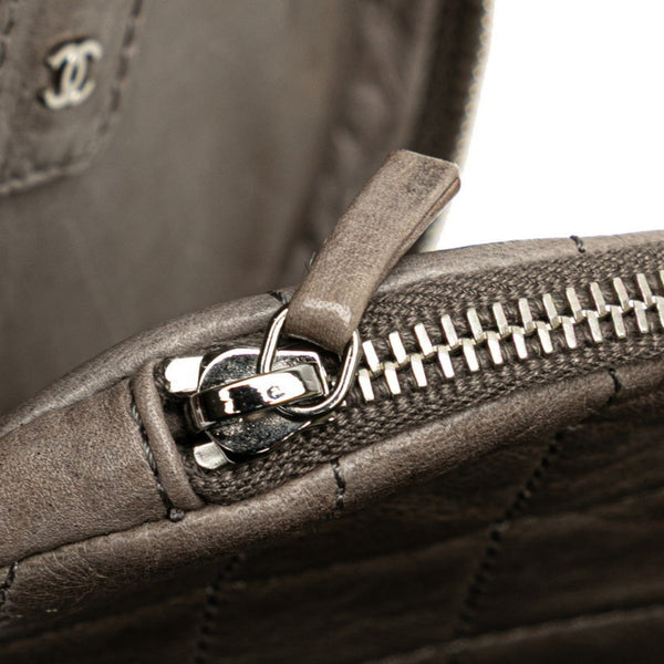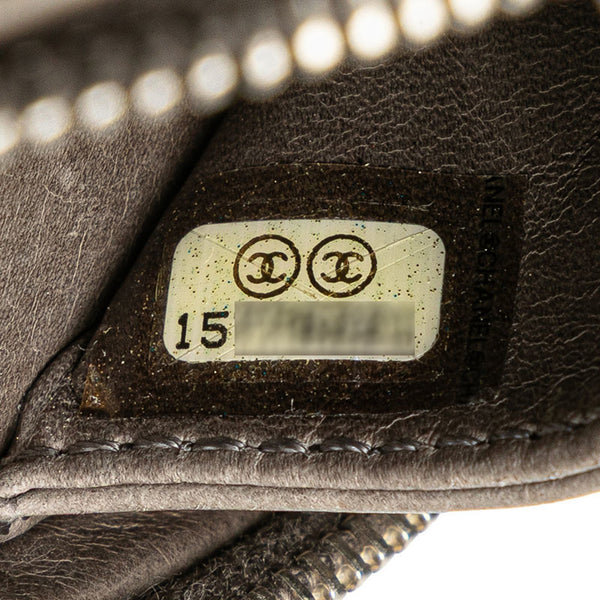 CHANEL Matelasse Coco Mark Round Pouch Vanity Bag in Gray Lambskin for Women