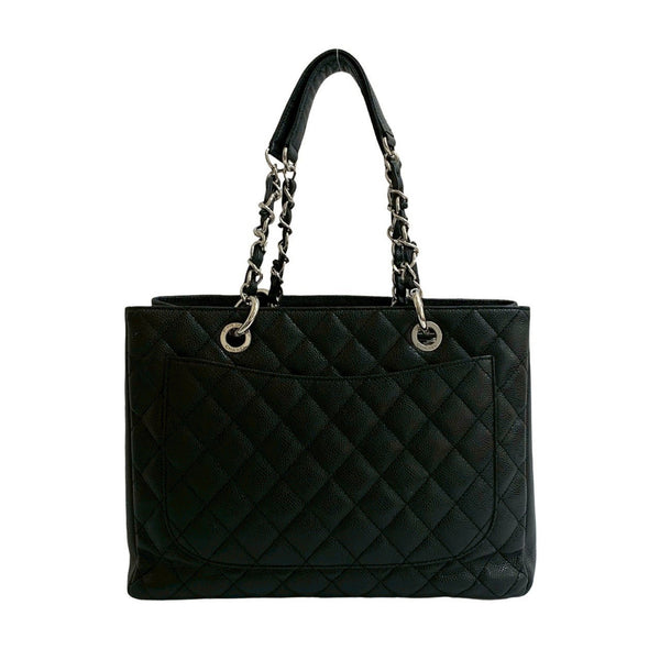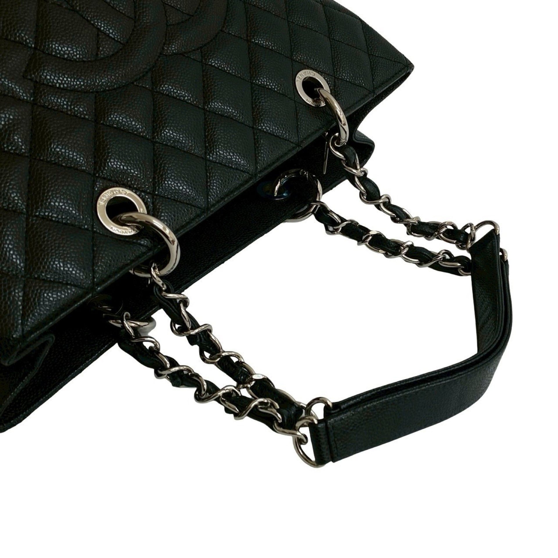 CHANEL Matelasse GST Coco Mark Caviar Leather Chain Tote Bag, Black, 39304