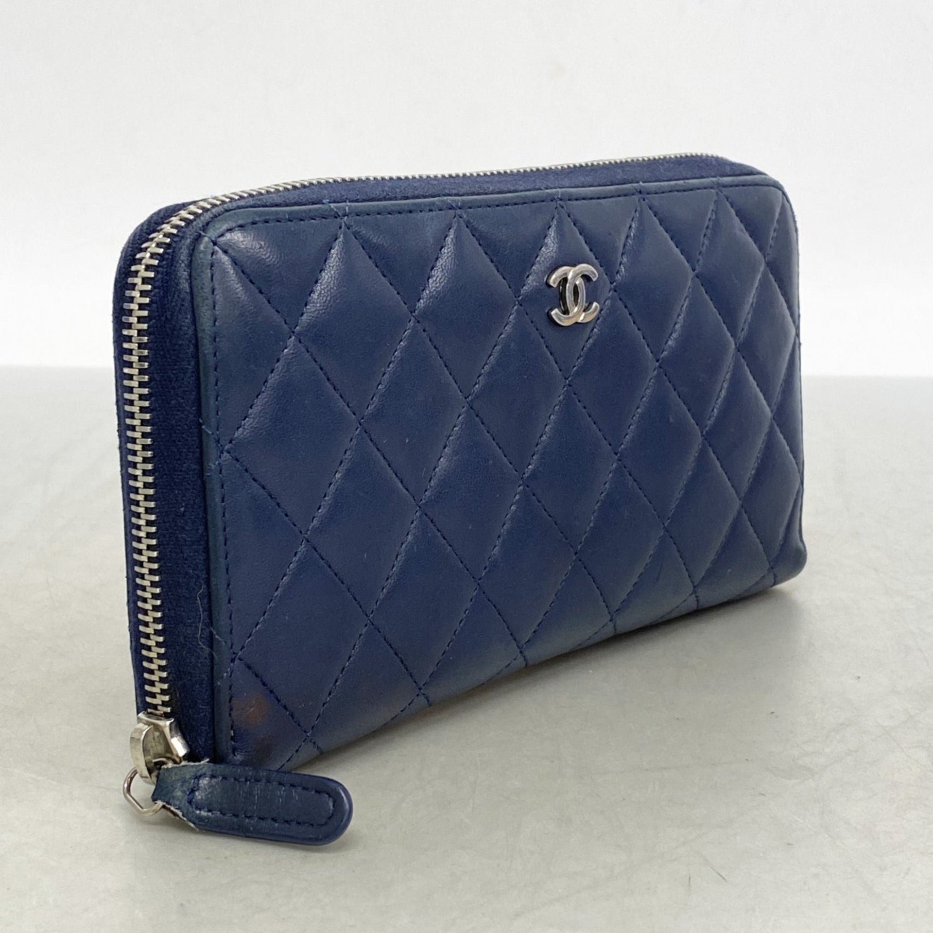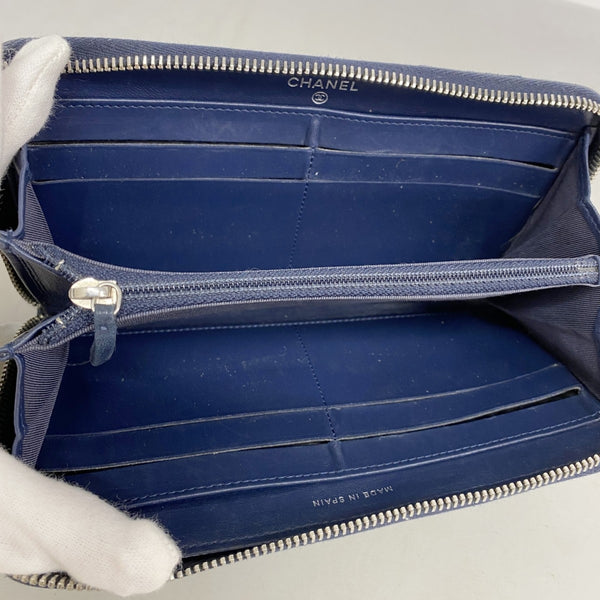 Chanel Matelasse Long Wallet, Lambskin, Navy, Women\'s
