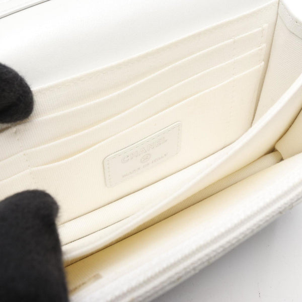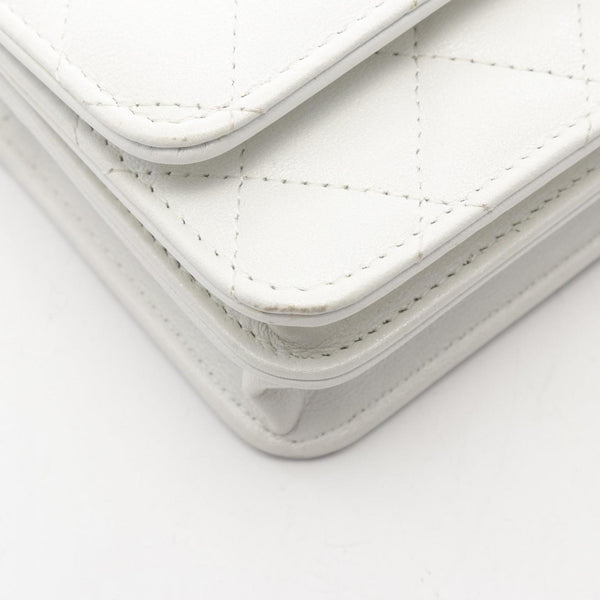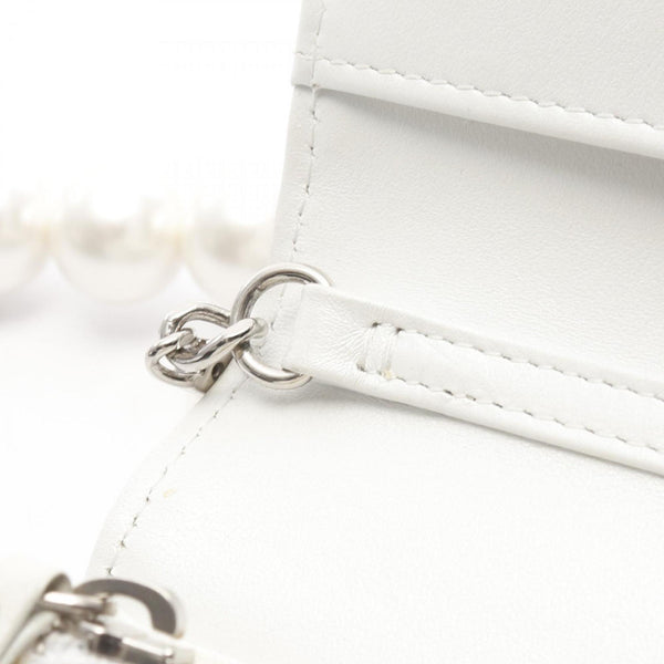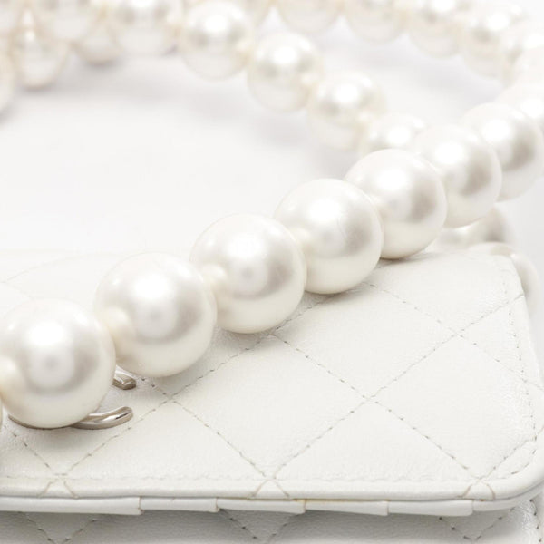 CHANEL Matelasse Pearl Chain Shoulder Bag, Leather, Women\'s, White, AP1839