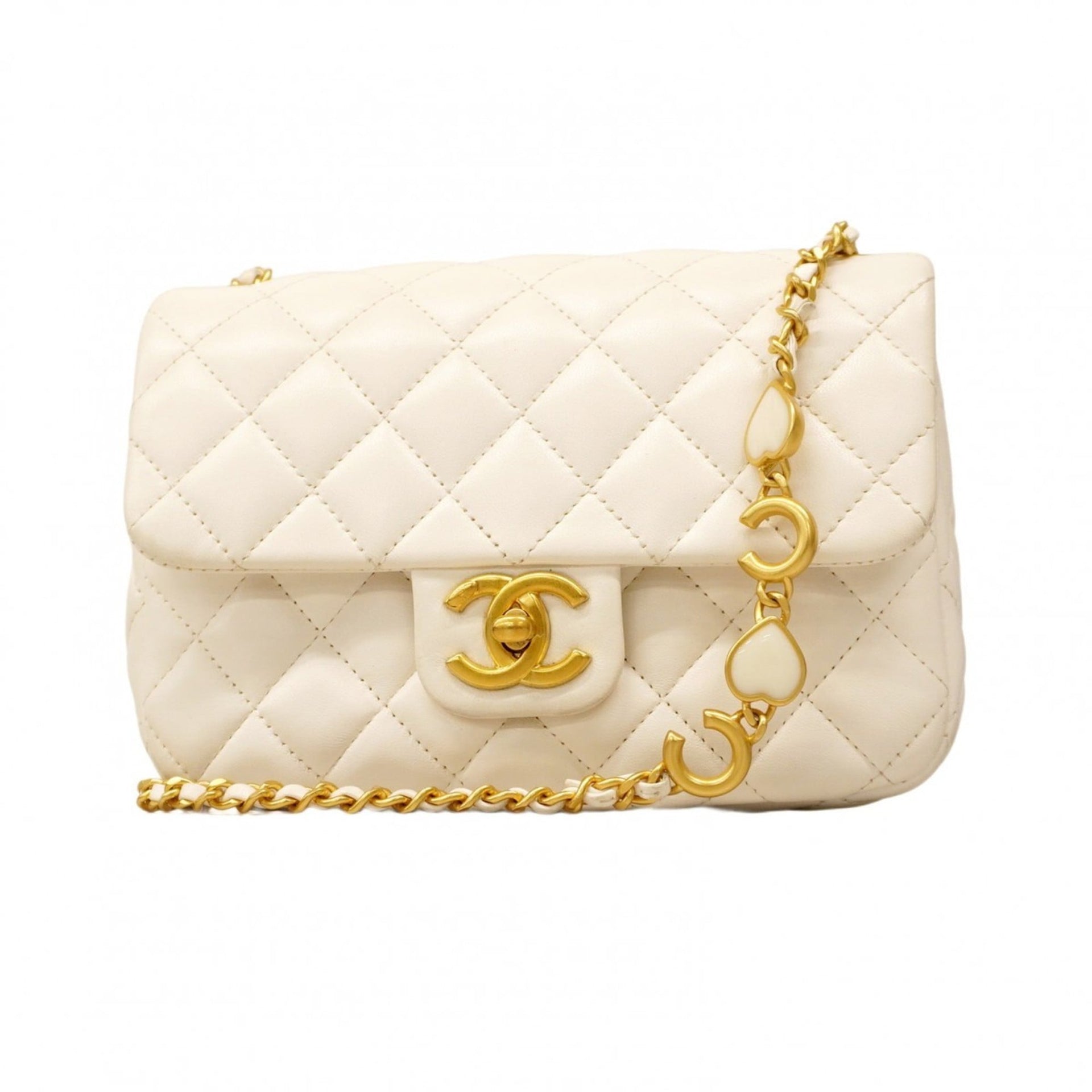 Chanel Matelasse Shoulder Bag with Chain Bag, Lambskin, White, Women\'s