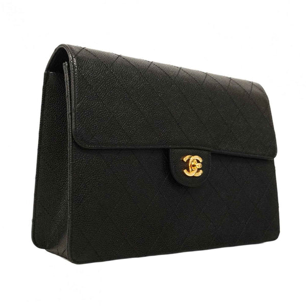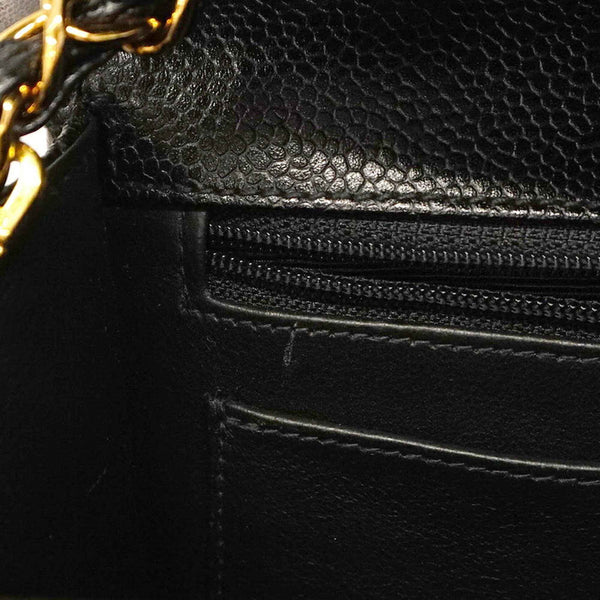 Chanel Matelasse Shoulder Bag with Chain, Caviar Skin, Black, Women\'s