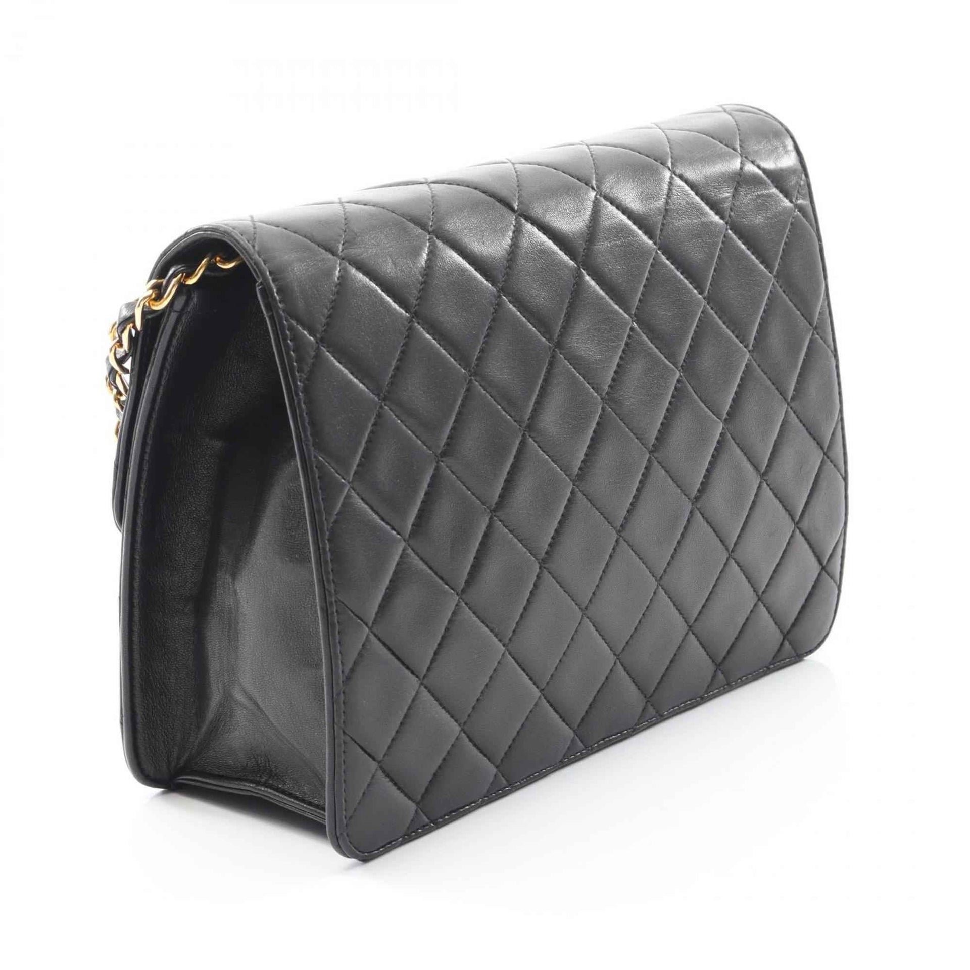 CHANEL Matelasse Single Flap Shoulder Bag in Lambskin Leather, Black, Women\'s, A03569