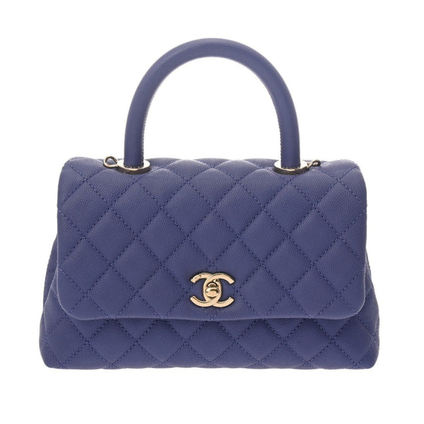 CHANEL Matelasse Top Handle Mini Flap Bag XXS 2-Way Chain Shoulder Purple AS2215 Women\'s Caviar Skin Handbag A