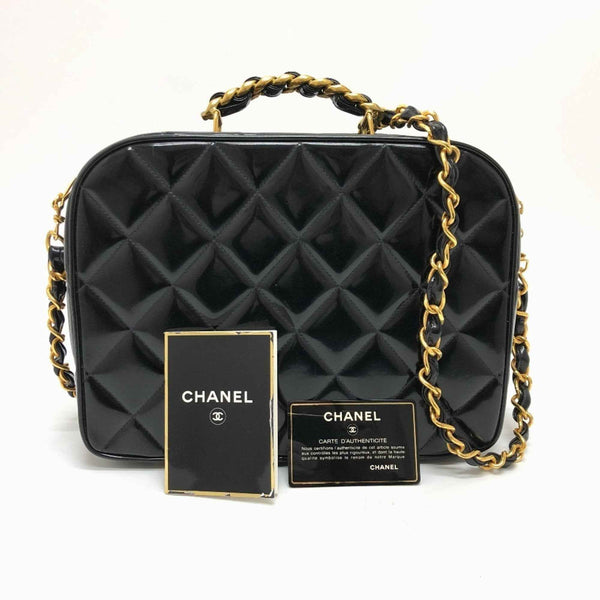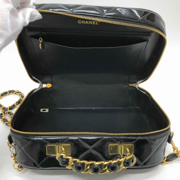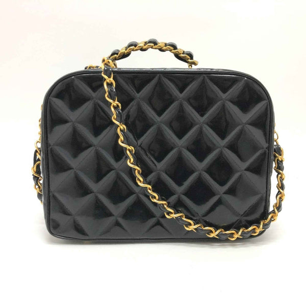 CHANEL Matelasse Vanity 2-Way Handbag in Enamel, Black, Women\'s