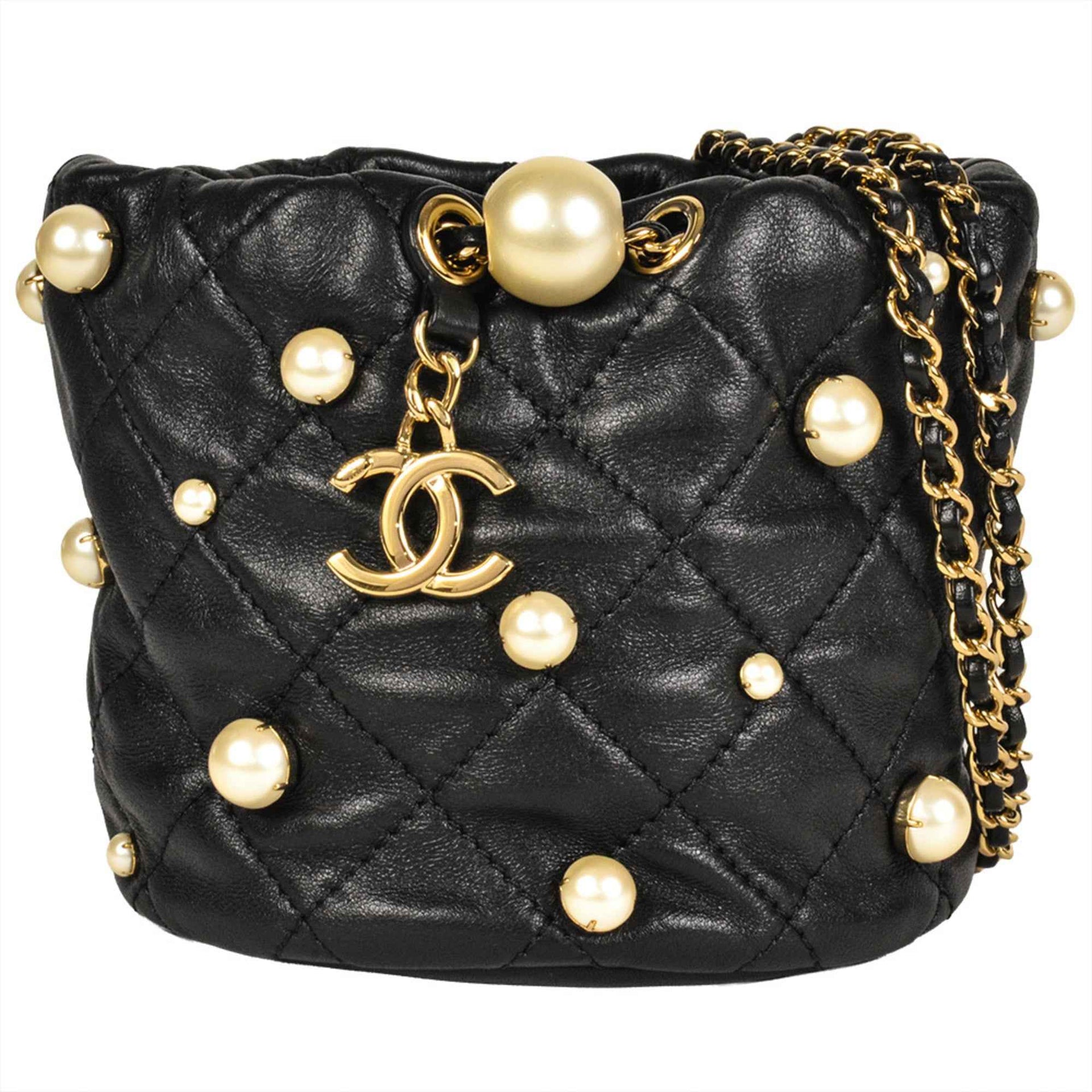 CHANEL Mini Chain Shoulder Bag in Black Lambskin with Gold Hardware, Coco Pearl, 8-digit serial number 31