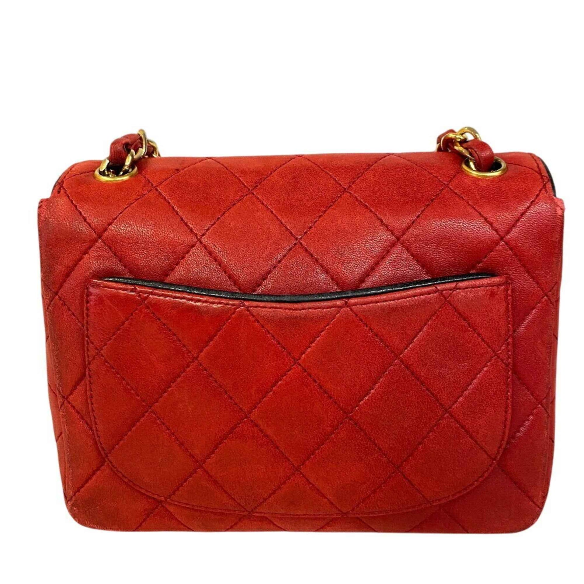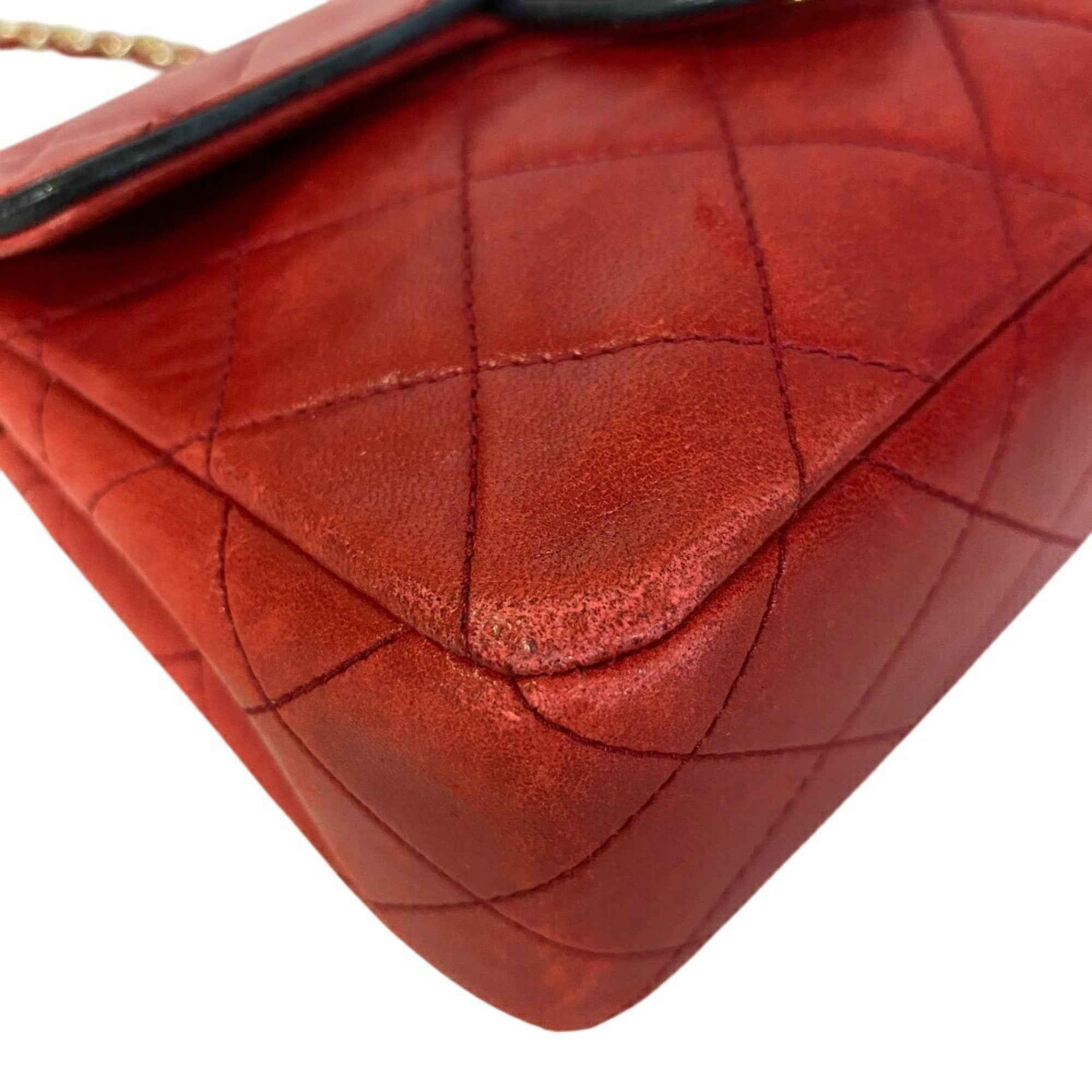 CHANEL Mini Matelasse Chain Shoulder Bag Lambskin Red Women\'s