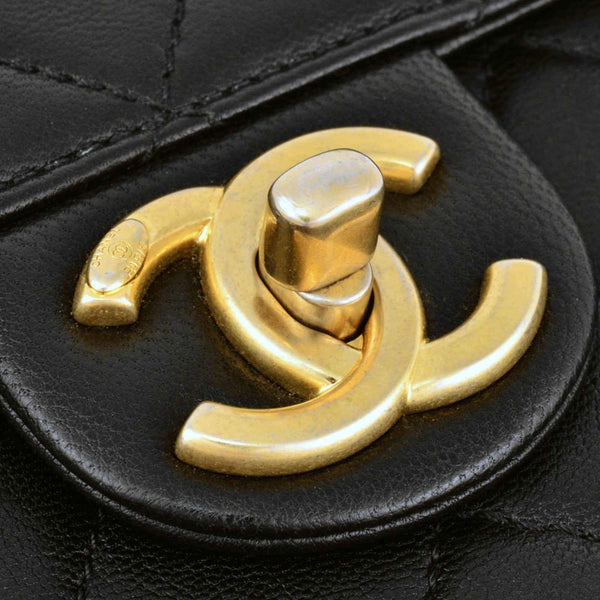CHANEL Mini Matelasse Chain Shoulder Bag Leather Black
