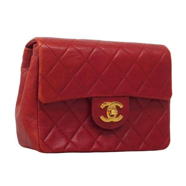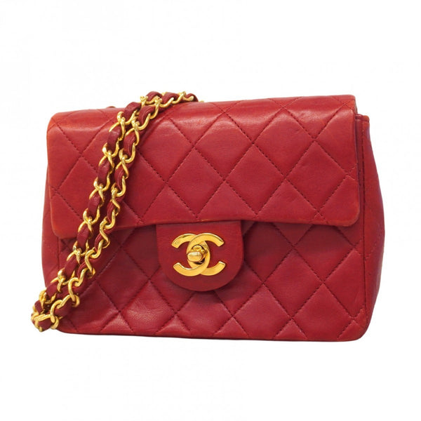 Chanel Mini Matelasse Shoulder Bag with Chain Bag, Lambskin, Red, Women\'s